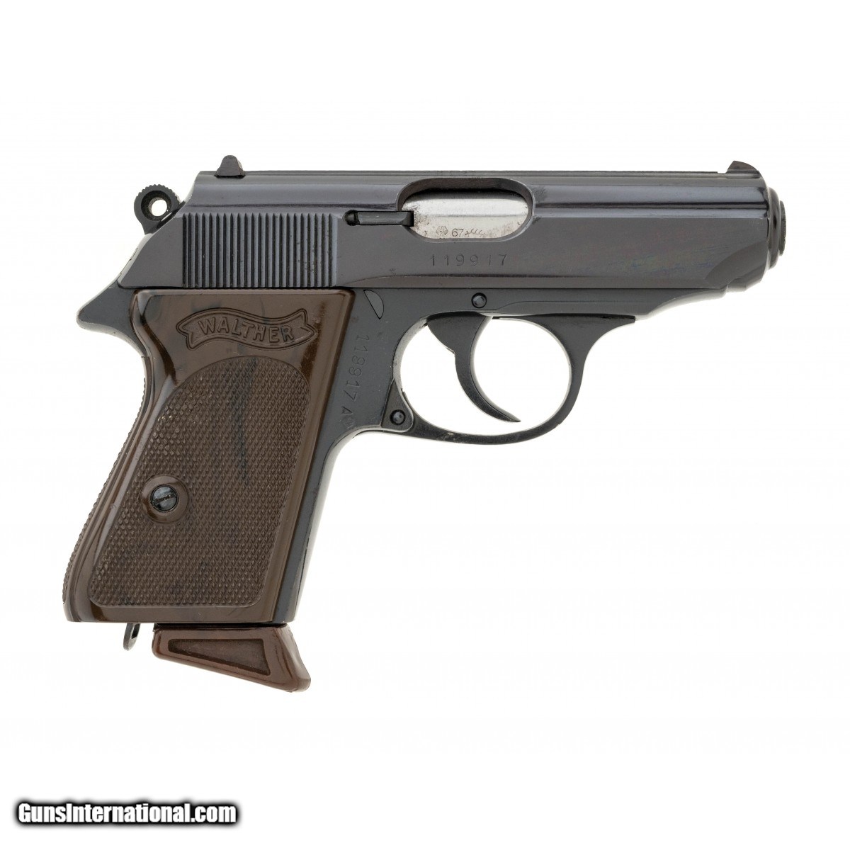 SN: 119917A. Made in 1967, .380 ACP, 3.375"" barrel. Bore is excellent & overall condition is very good + with some light handling wear. Comes with original factory plastic grips & an original Walther 7-round finger rest magazine.