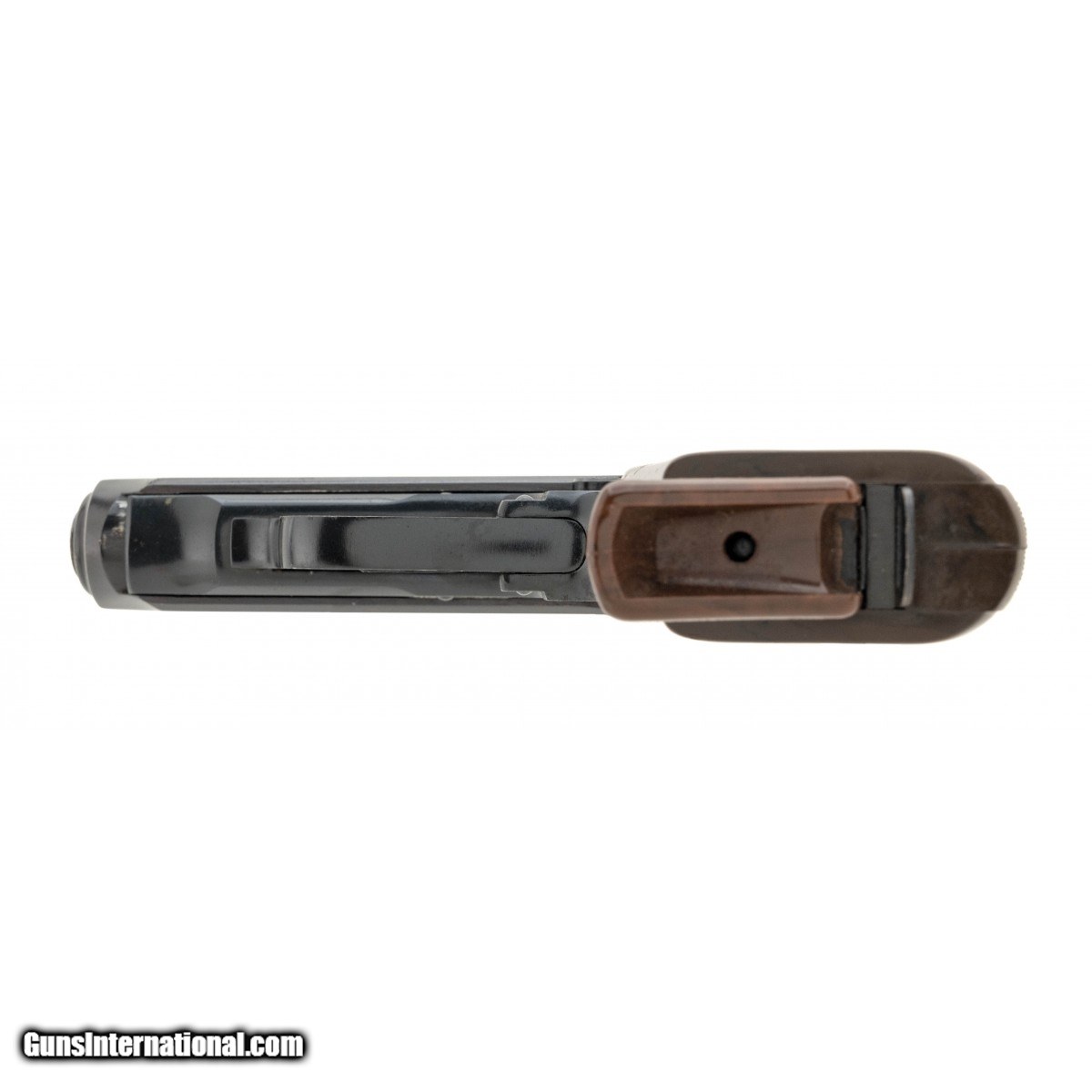 Description: " SN: 119917A. Made in 1967, .380 ACP, 3.375"" barrel. Bore is excellent & overall condition is very good + with some light handling wear. Comes with original factory plastic grips & an original Walther 7-round finger rest magazine. SOLD |