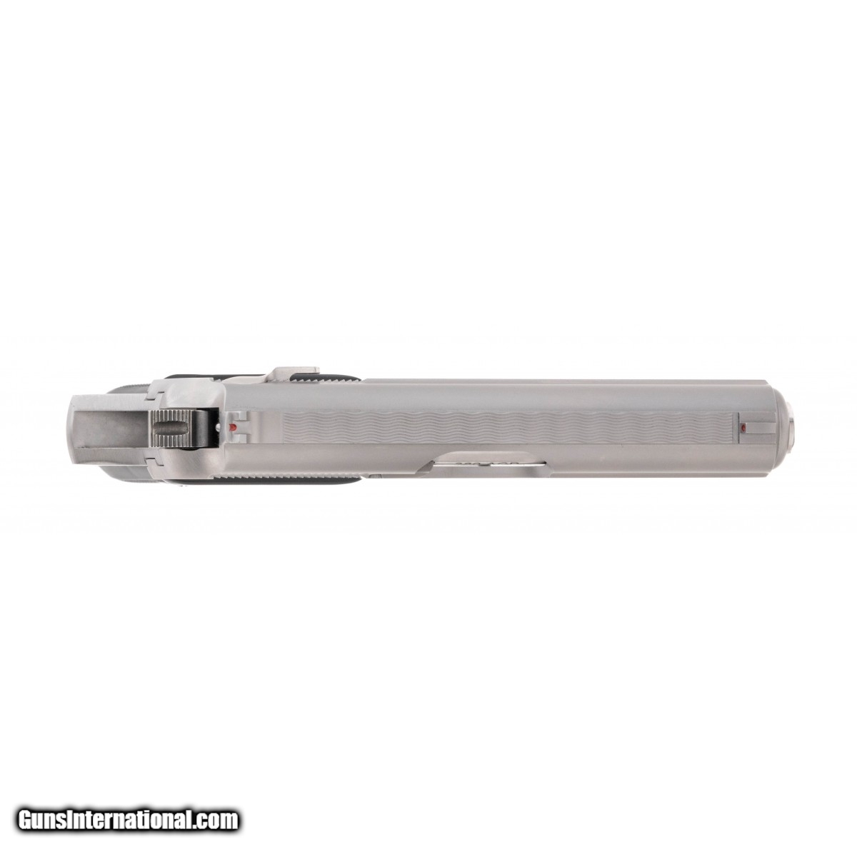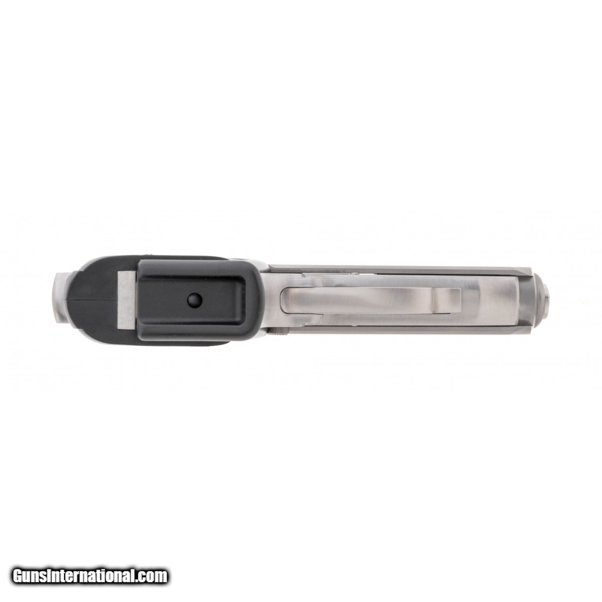Description: " SN:AA089389. Hammer fired metal framed 3.25" double action pistol with synthetic checkered grip panels and pinky extension. In excellent condition. SOLD |