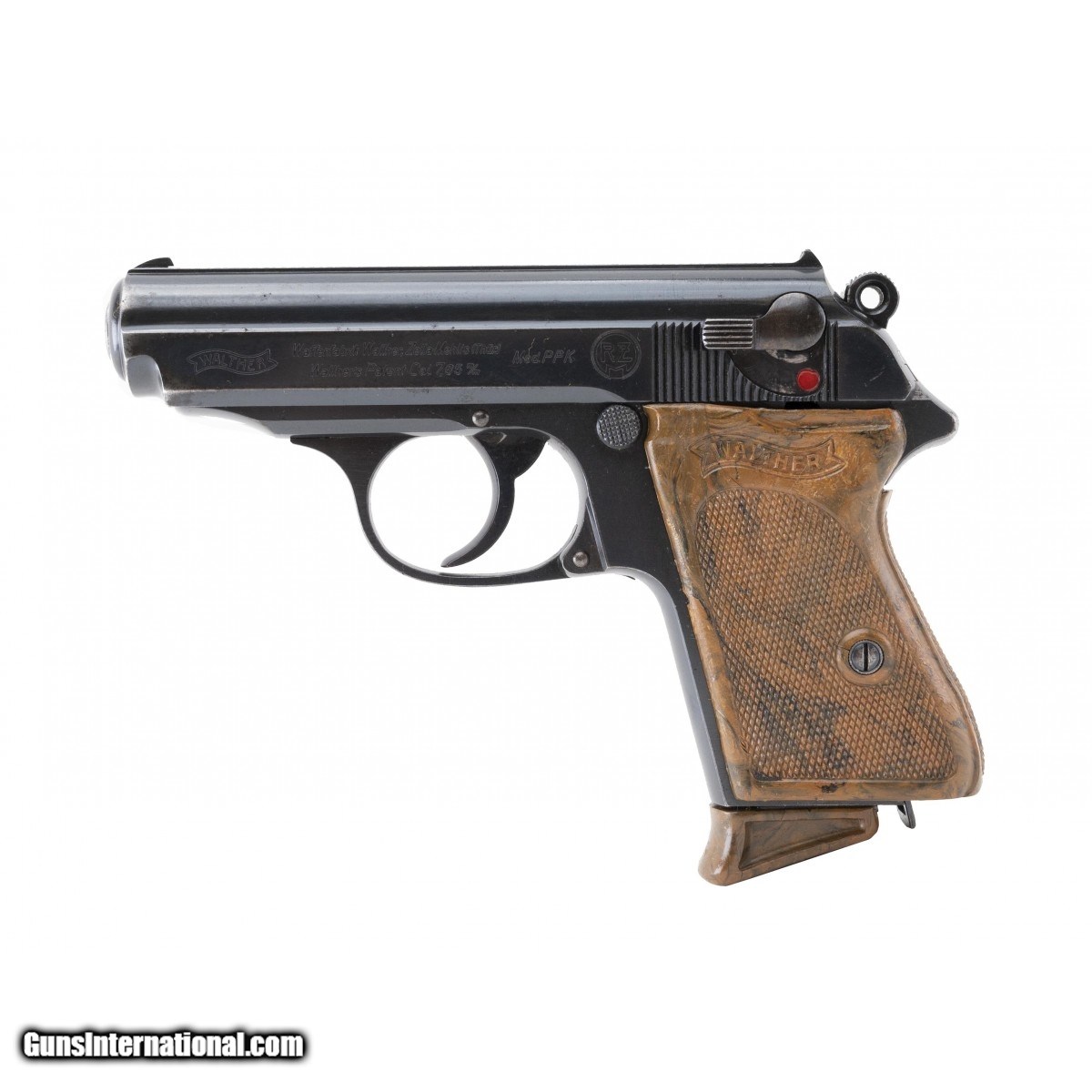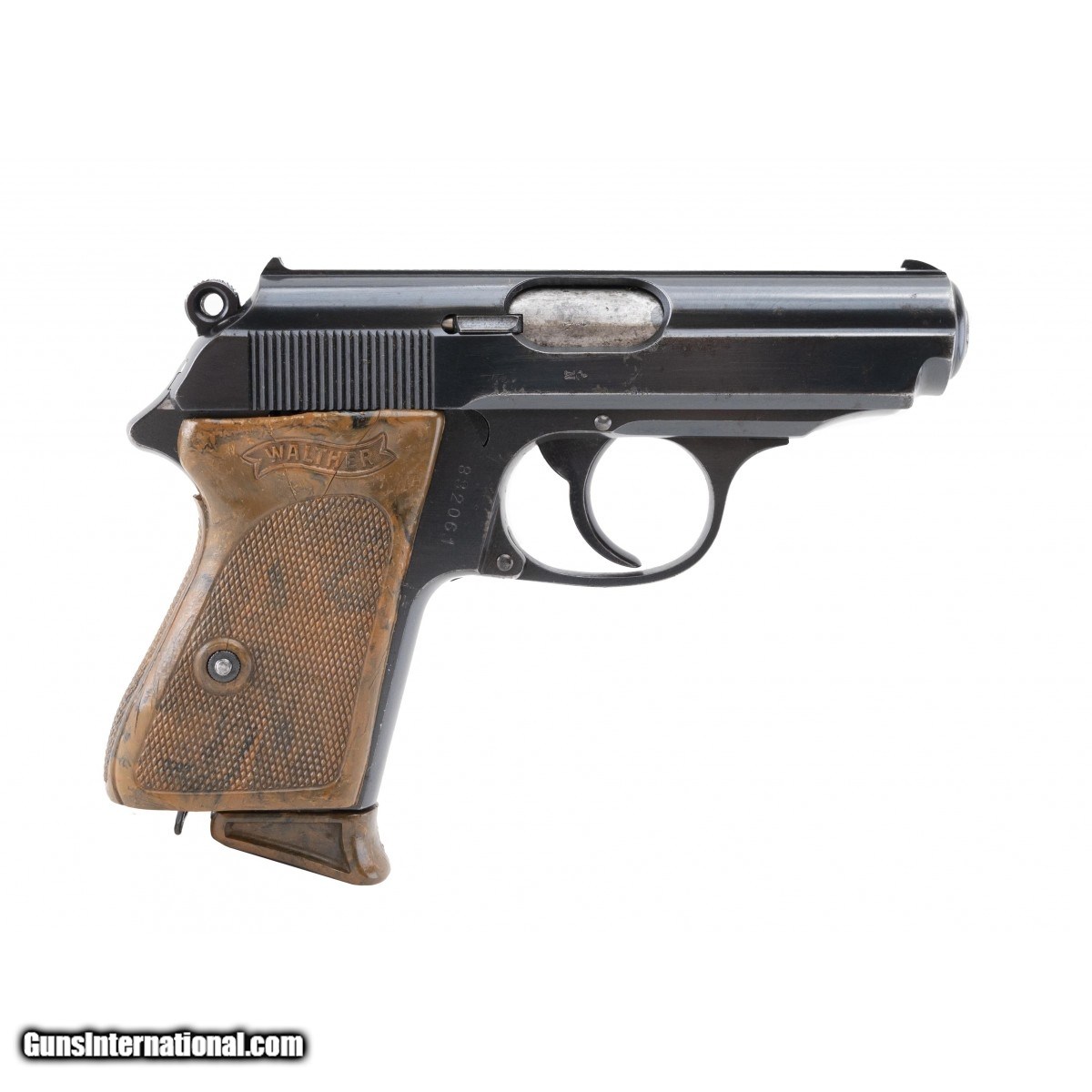 Description: " Desirable 90 degree safety model. Slide is RZM marked. Grips have some warping and cracks; which is typical on these early grips. Bore is excellent. A reasonably priced early PPK. SOLD Curio/Relic: Yes |