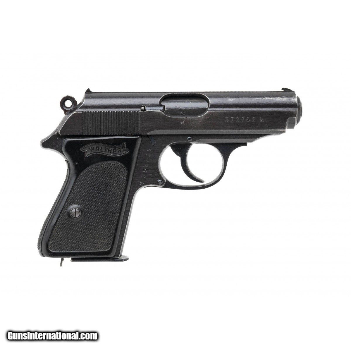 Description: "Serial number 372762k. Made in 1942. 32 ACP caliber with a 3 ¼" barrel. This gun is in excellent condition with 95%+ of the original blue. Grips are excellent. This gun has the military proof mark of the eagle over 359. Consequently, the finish is also a dull polish instead of the normal high polish you see on the commercial guns. The German military purchased 4 of the Walther PPs to everyone one of the PPKs. Scarce gun! (Consignment) SOLD Curio/Relic: Yes |