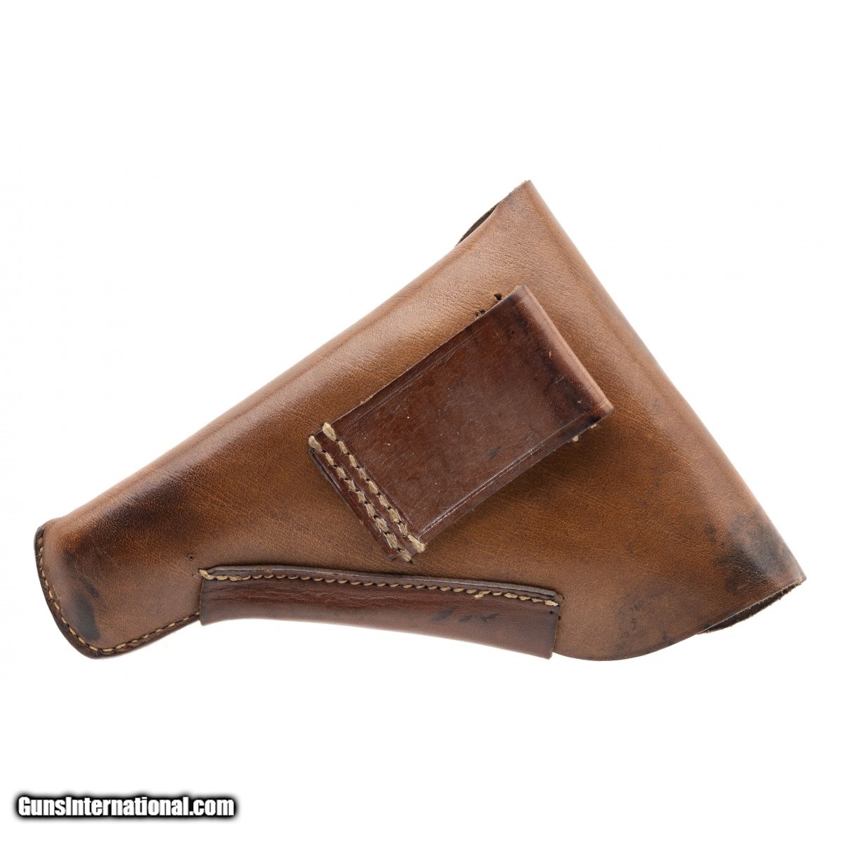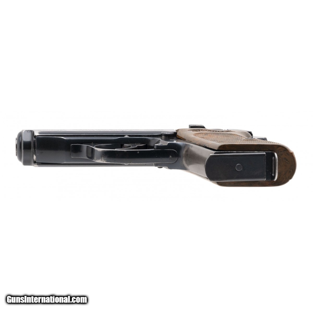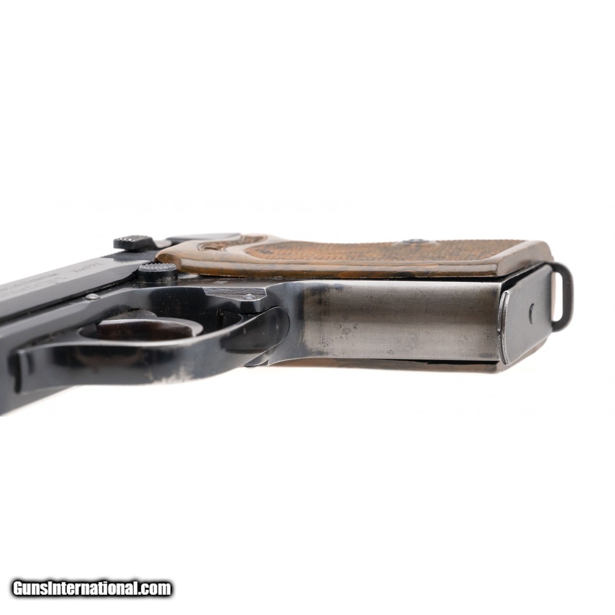 Description: "Serial number 270602K. Made in 1940. 32 ACP caliber with a 3 ¼" barrel. This gun is in very good condition with 80% of the original blue. This is one of 3500 guns in the first army contract with the E/359 proof marks on the slide and frame. Holster is a reproduction. Very scarce gun! (Consignment) SOLD Curio/Relic: Yes |