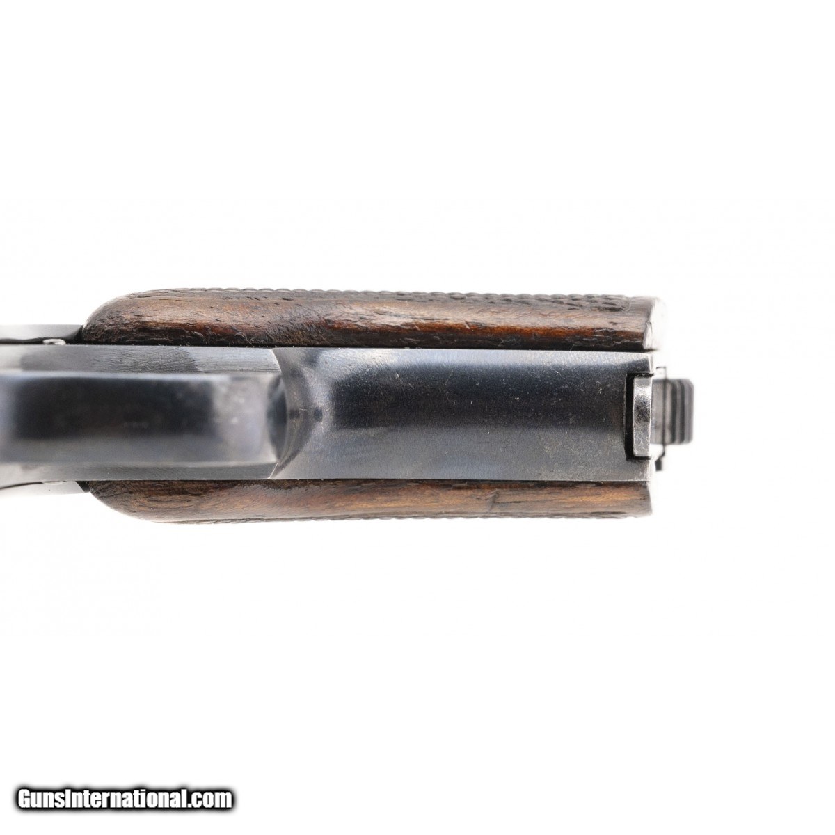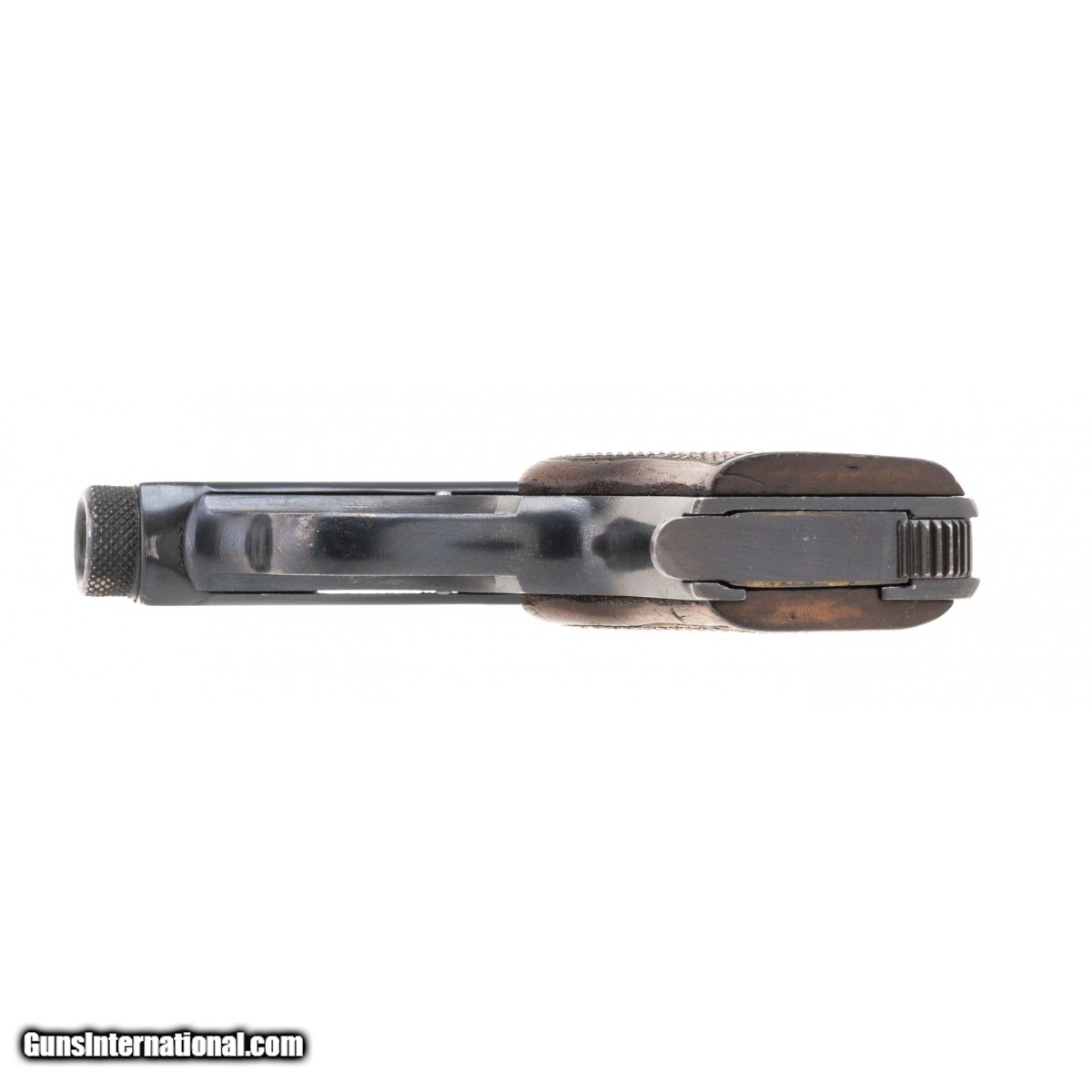 Description: " Semi-auto pocket pistol with 2.25"" barrel. The bore is very good with some etching. The pistol retains 98% of its original blue. The checkered wood grips are very good plus. The 1st variant of the Walther 5 has a sighting groove and tiny front sight post. Overall an excellent model 5! SOLD |