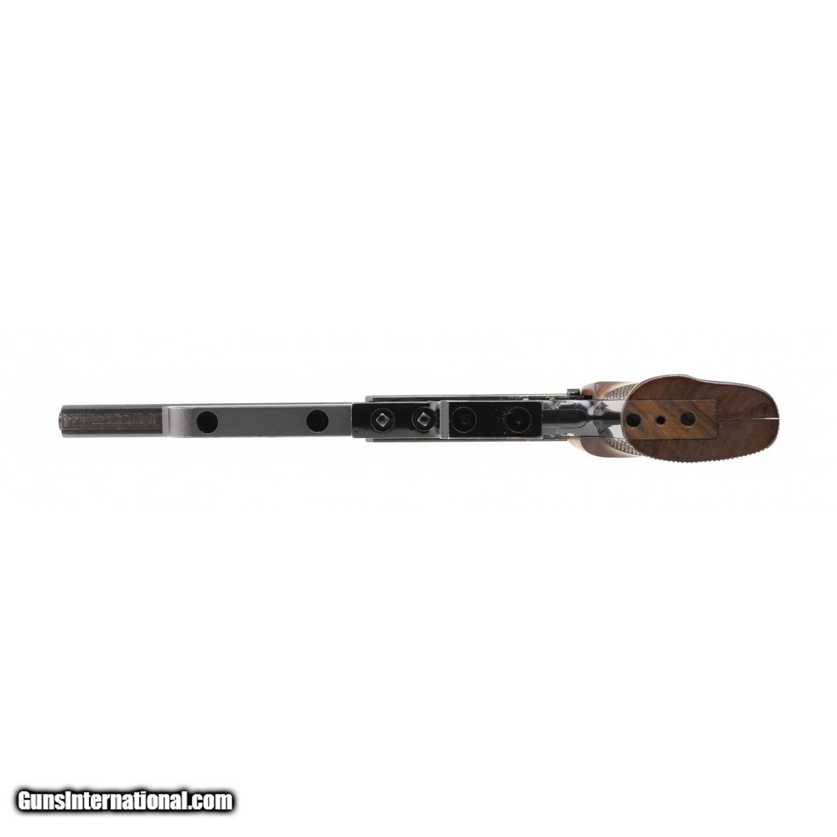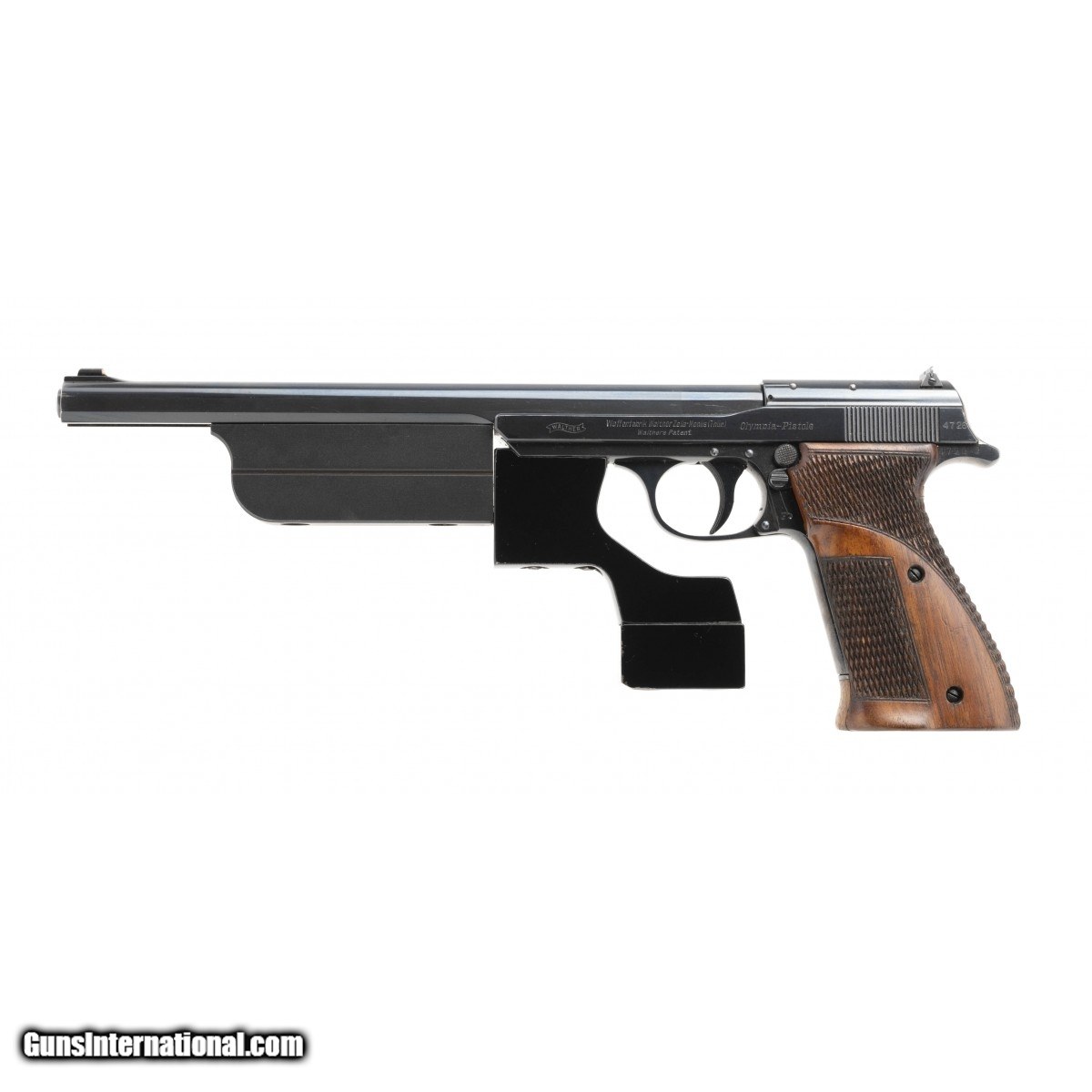 Description: " Pre-war model 1936 target pistol with a 9 3/8"" barrel and weights. The gun is excellent with 98% original blue finish. The grips are excellent with very light wear. SOLD |