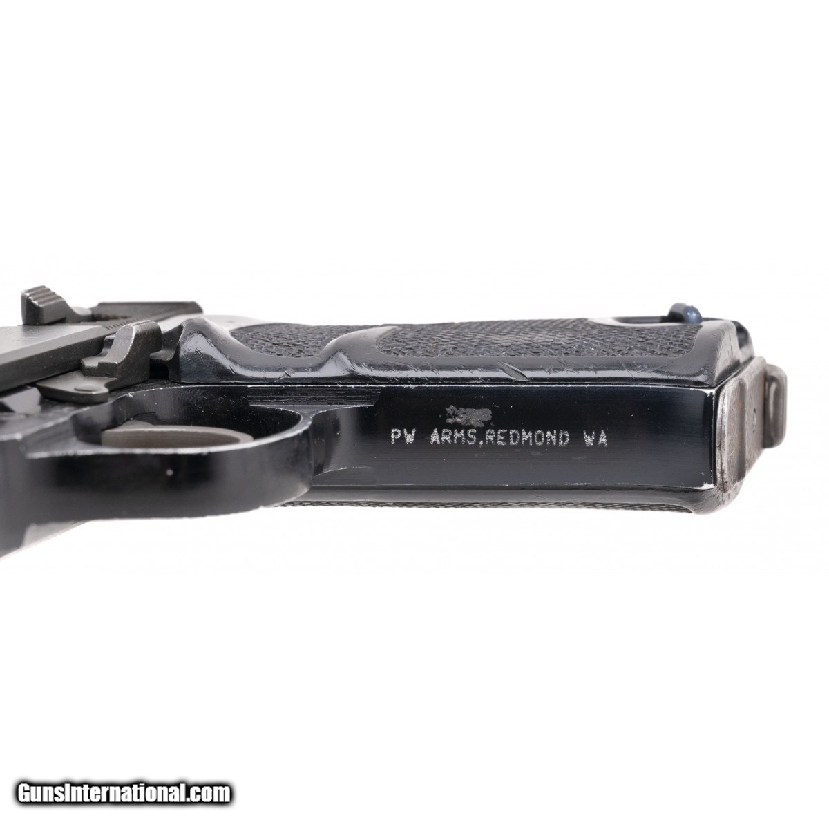 Description: " SN: 415851. Made in 1979. 9mm with a 5"" barrel. Bore is shiny with strong rifling. German made Aluminum frame pistol. Finish and grips are in good condition with expected handling wear noted. Pistol comes with extra magazines and period correct 1969 dated holster. Overall very good condition. SOLD |