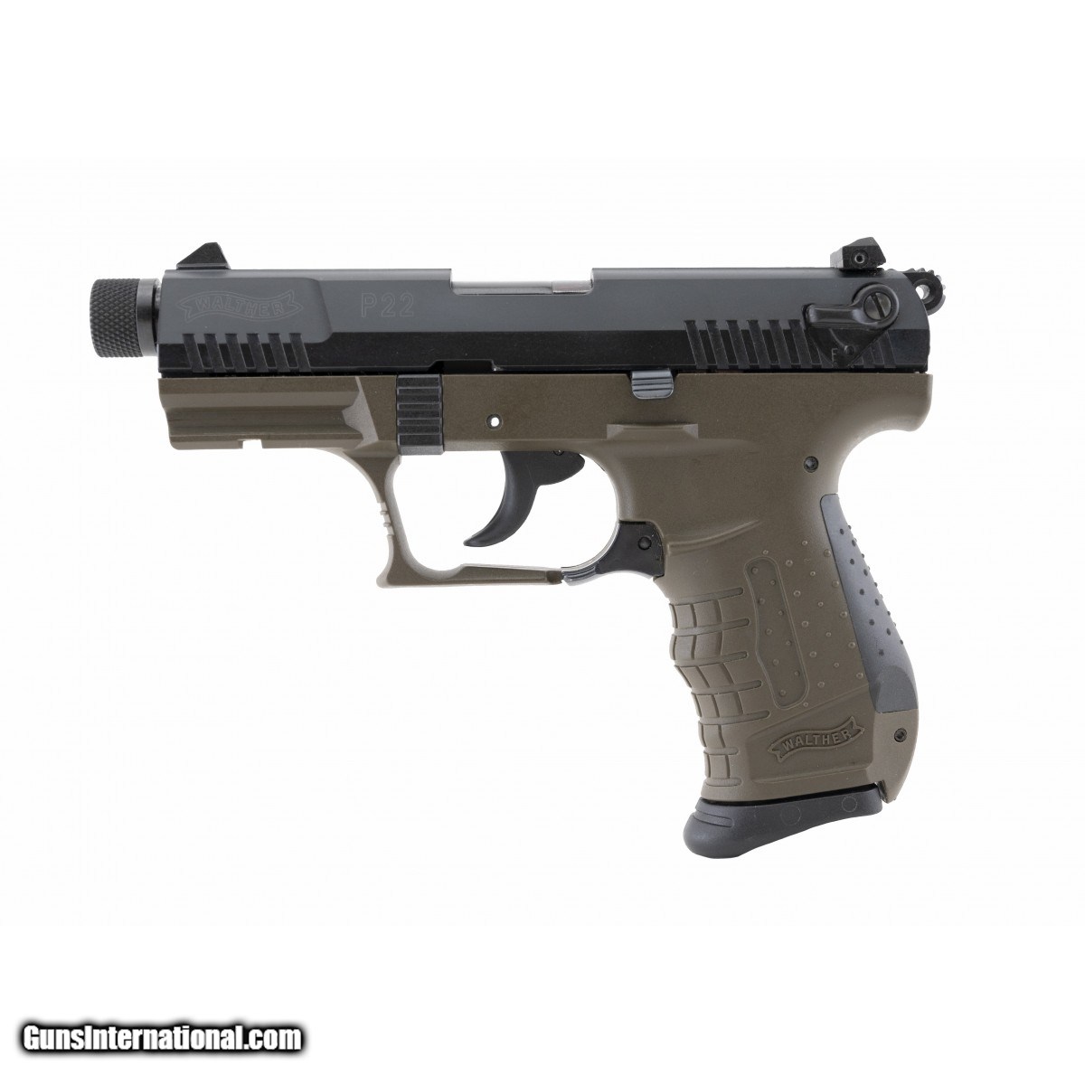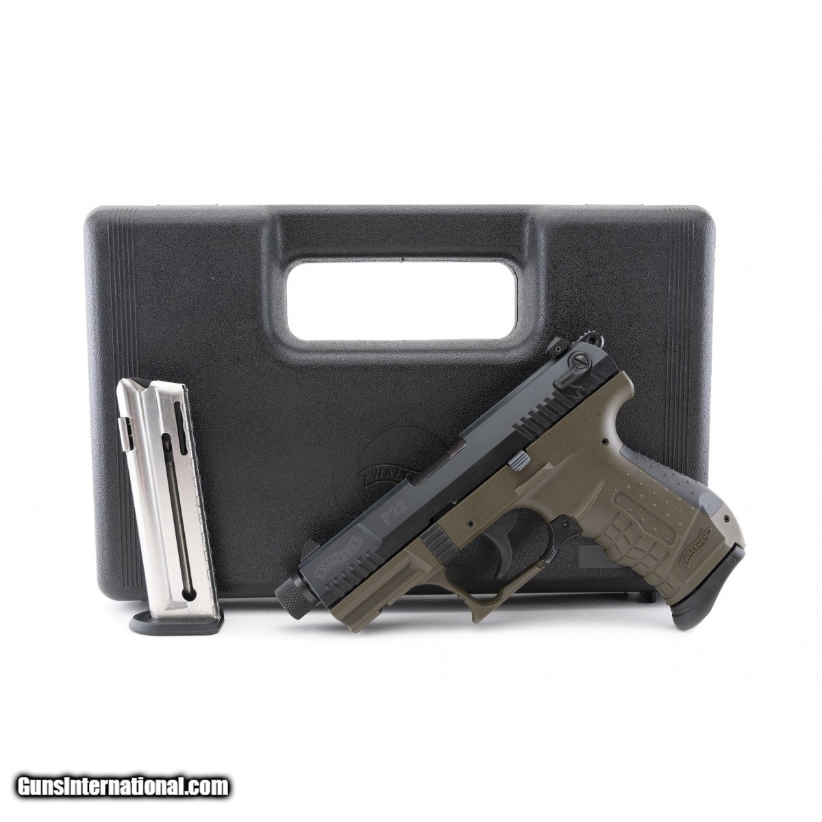 Semi-automatic rimfire model with threaded barrel, safety, and OD green finish. Very good condition with spare magazine and box.