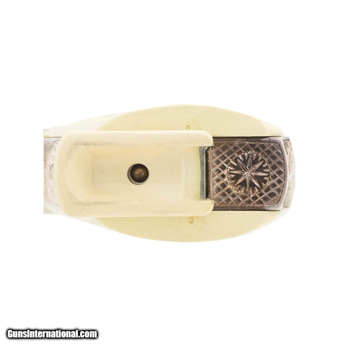 Description: " SN: 69009A. Beautiful W. German made factory engraved and silver plated pistol made in 1983. Has full coverage oak leaf engraving and lustrous silver plating, not nickel or chrome. The grips are the correct faux ivory for this period. Mint condition with box, papers and extra mag. SOLD |
