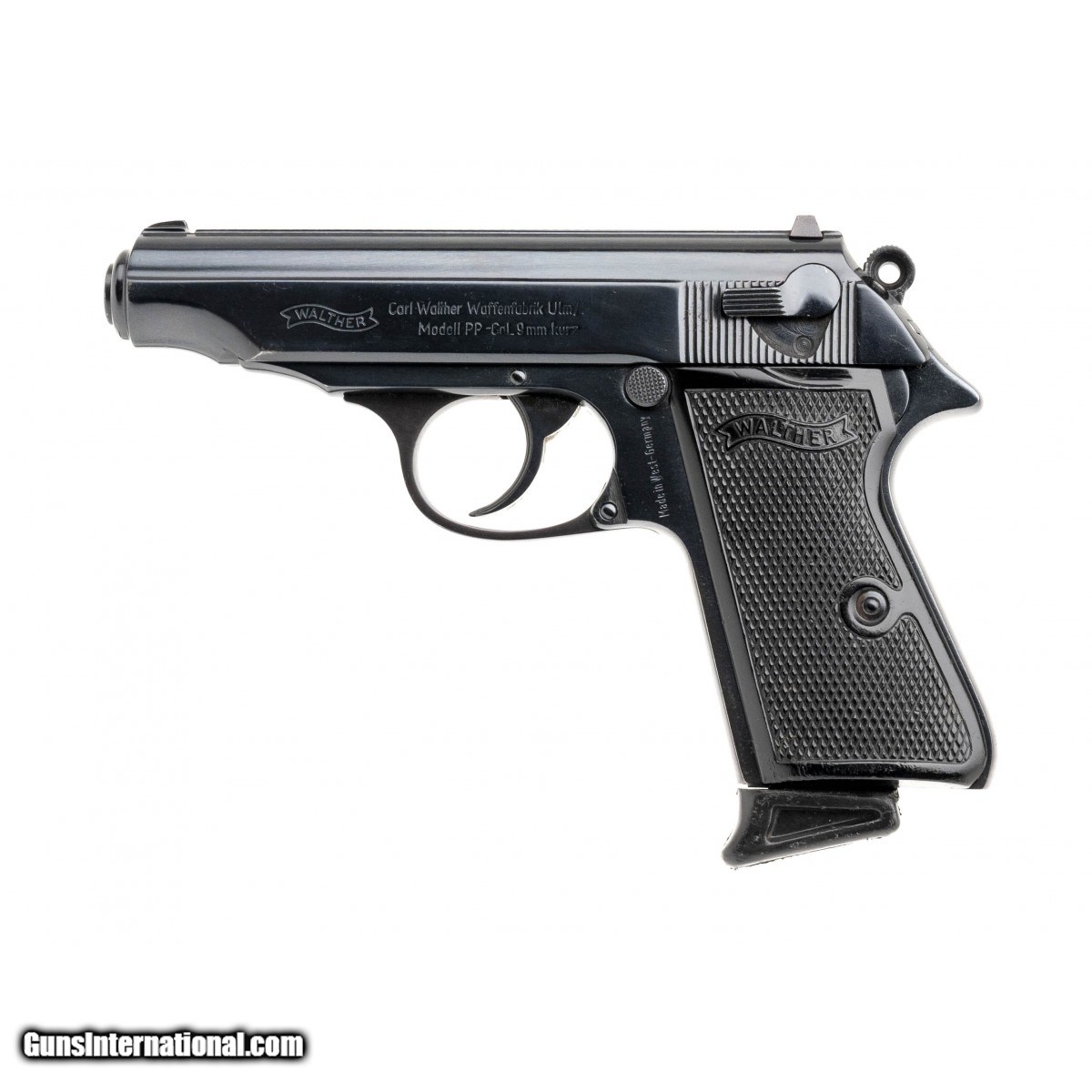 SN: 33309A. Semi-automatic compact handgun made by Walther. '69 barrel date. Double-action/single-action firing mechanism with decocker safety. 3.75"" barrel chambered for 9mm Kurz (.380 Auto). Great condition overall with small handling marks in the blued finish. Interarms import mark on the right side of the slide. Left side of frame marked ""Made in West-Germany"". Action functions correctly including safety.