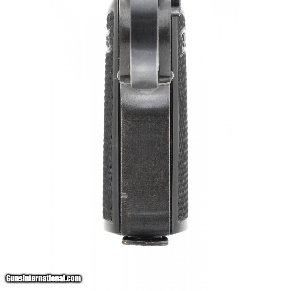 Description: " WWII German police pistol with 3.5"" barrel. The bore is excellent and the pistol has approximately 98% of its original blue. The action works perfectly. There is an ""Eagle F"" marked on the left side of the frame. The grips are very good with some wear on the lower right side grip. This is an excellent German Police pistol. SOLD Curio/Relic: Yes |