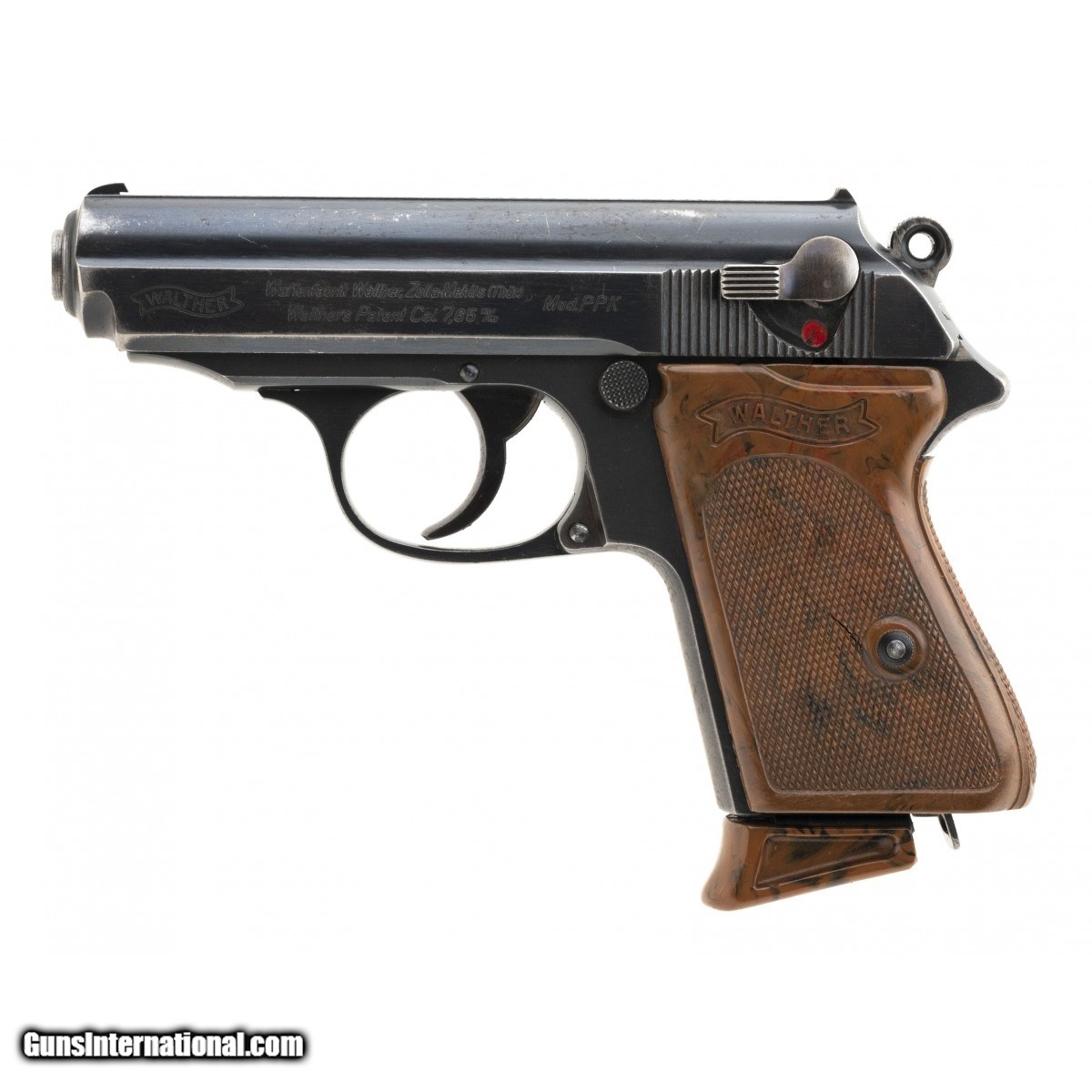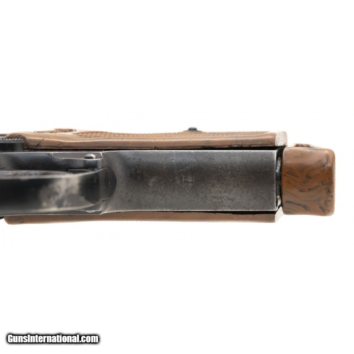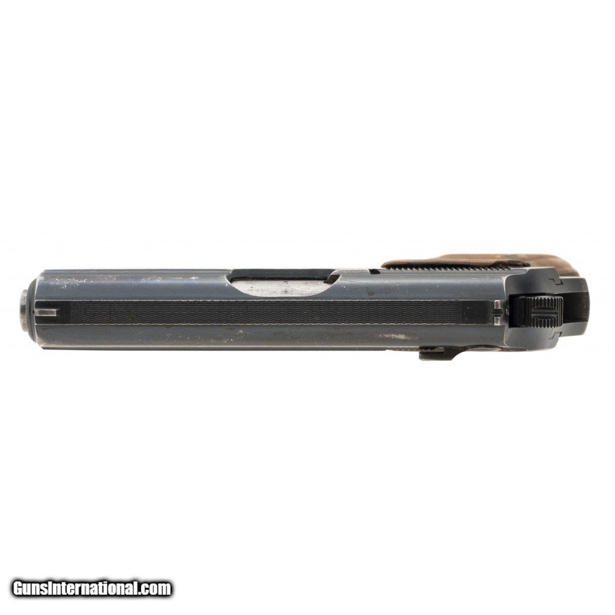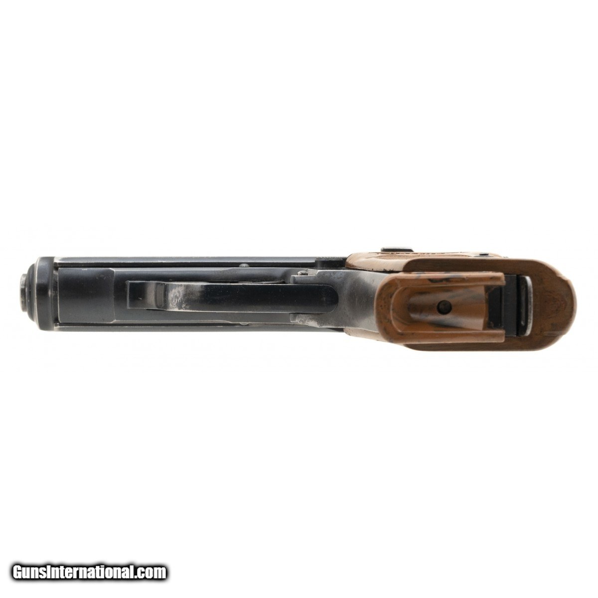 SN:311631K. Pre-war commercial model. Metal has approximately 93% original finish with holster wear. Bore is excellent. Grip has a chip on right hand side and a minor crack on left side. Good overall condition.