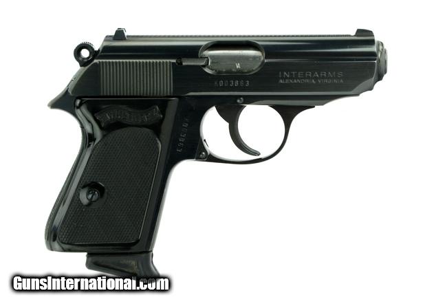 Description: " Walther PPK .380 ACP caliber pistol. Blued model Interarms marked in excellent condition with box and extra magazine. SOLD |