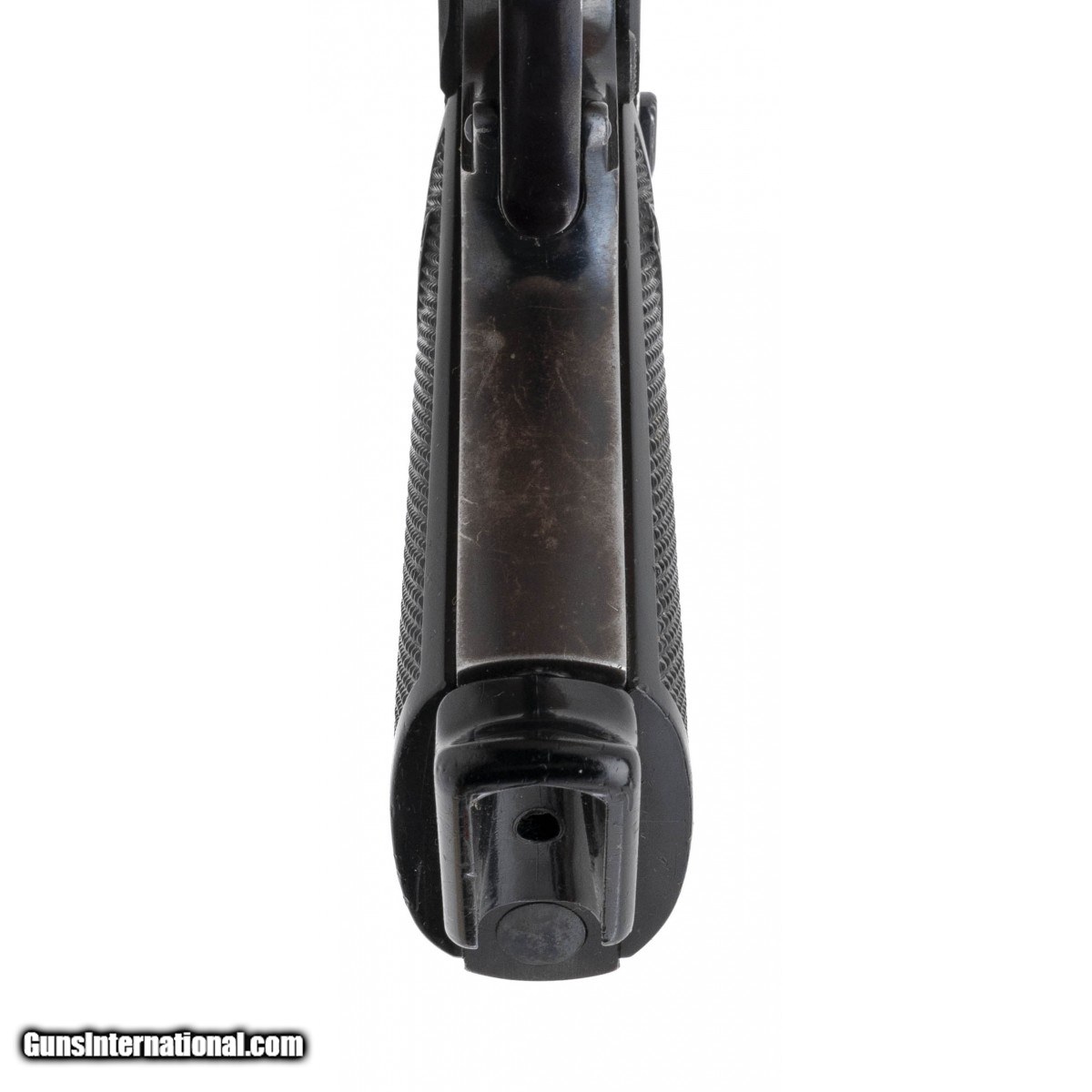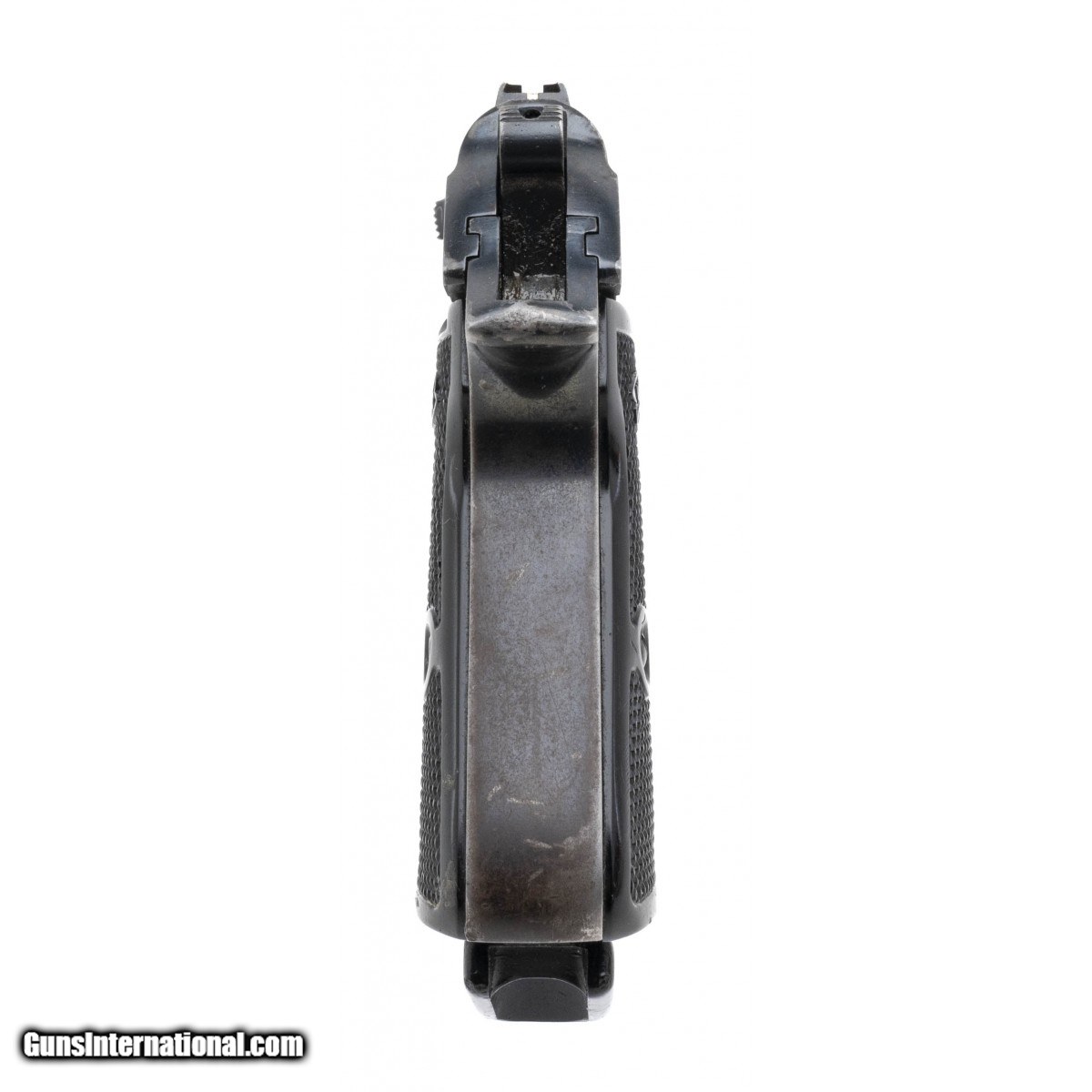 Description: " Serial No. 050438, circa early 1990's, .380, 3.3"" round barrel. Left side of slide has spotted discoloration going to the slide. Bore is bright and shiny with strong rifling. Right of slide is import stamped. Grips are very good with light wear noted on the edges. Action functions correctly. Consignment. SOLD |
