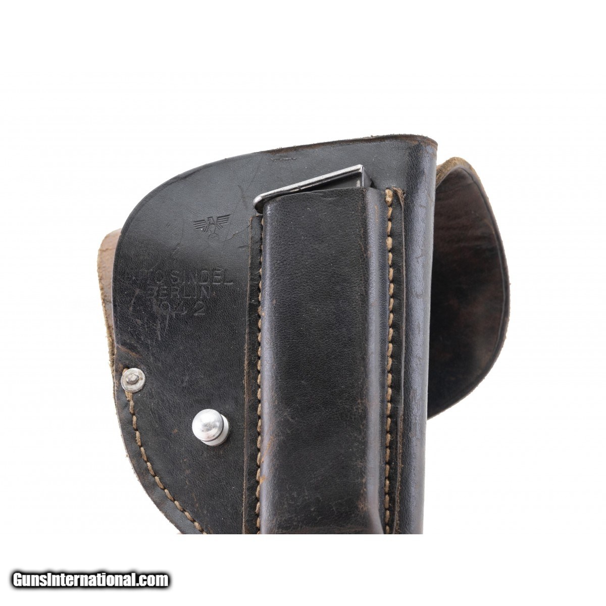 Very fine police marked PP. Left side of frame is eagle F marked. Pistol has approximately 98% original finish. Bore is excellent. Holster is dated 1942 and marked ""Otto Sindel Berlin"" on flap. Comes with an extra magazine. An excellent example of a police issued PP!