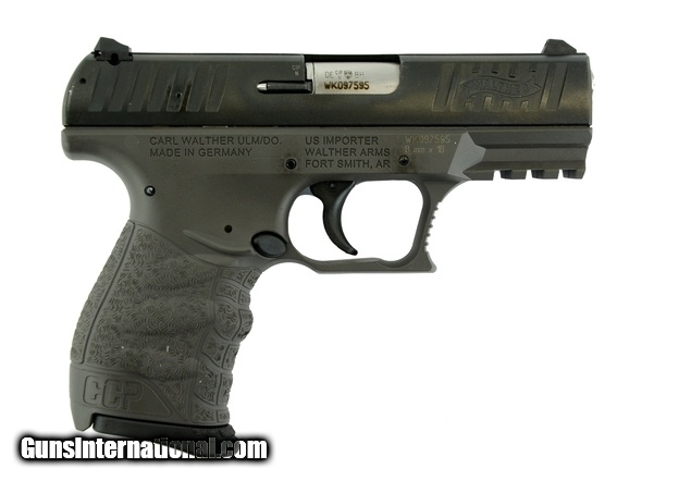 Description: Walther CCP 9mm caliber pistol. 2 Tone model black over gray in excellent condition with box and extra magazine.