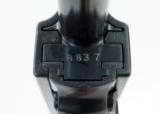 Walther P.38 9mm Para AC Code caliber pistol. Extremely rare “AC No Date”. Correct Waffenamts on the slide, frame, and small parts. Matching serial numbers in the correct range. Grips are correctly numbered to the gun. Bore is about very good. Import marked on the back of the frame in very small letters. Matching magazine with correct Waffenamt on magazine and on internal base plate when you remove the bottom of the magazine. The matching number is on the magazine tab. One of our sources says it should be numbered on the body of the magazine. This is a very sharp pistol. We think this gun was Dip Blued when it was imported. There is no buffing, no rounding of edges. All Waffenamt and markings are crisp and clear. Under a strong magnifier there are very fine etchings in the metal. We are selling this as a Dip Blued, no buff, no extras polish pistol that looks original in all respects. We think this gun had good original blue when it was Dip Blued and that is part of the reason this rare pistol looks so good. Note: Guns imported in the 70’s and 80’s were Dip Blued as a standard procedure by importers no matter how much original finish was on the gun.