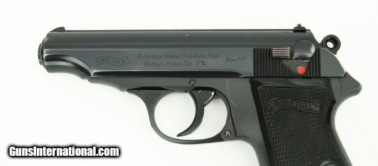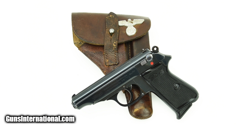 Walther PP .380 ACP caliber pistol. Rare .380 (9mm) bottom magazine release PP with history. Gun comes with holster and extra magazine. Grips are excellent. Note: this pistol comes with a letter stating the pistol was taken from a German officer at Dachau Concentration camp, by a U.S. Army Sergeant and part of the troops who liberated the prisoners at Dachau. Letter from the granddaughter. Gun has 98% original blue. Gun has no Waffenamts and was apparently a private purchase by the officer. The holster has no Waffenamts or manufacture code or stamps other than PP on inside flap. The cap eagle is a typical American G.I. additional often seen on captured items. We have sold many WWII captured guns but none from one of the concentration camps. This is the first!