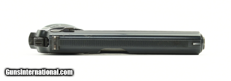 Description: Walther PP .380 ACP caliber pistol. Rare .380 (9mm) bottom magazine release PP with history. Gun comes with holster and extra magazine. Grips are excellent. Note: this pistol comes with a letter stating the pistol was taken from a German officer at Dachau Concentration camp, by a U.S. Army Sergeant and part of the troops who liberated the prisoners at Dachau. Letter from the granddaughter. Gun has 98% original blue. Gun has no Waffenamts and was apparently a private purchase by the officer. The holster has no Waffenamts or manufacture code or stamps other than PP on inside flap. The cap eagle is a typical American G.I. additional often seen on captured items. We have sold many WWII captured guns but none from one of the concentration camps. This is the first! SOLD |