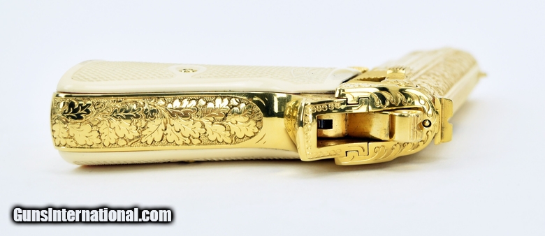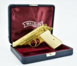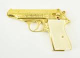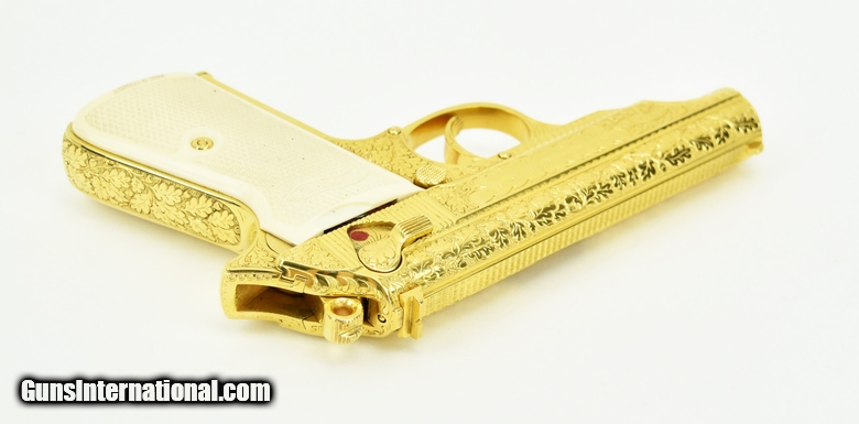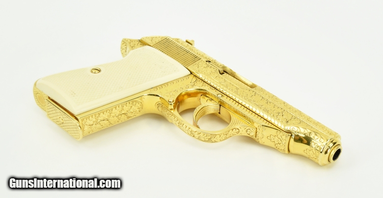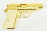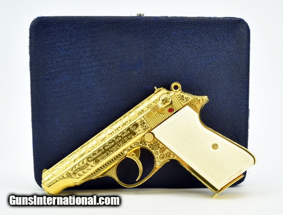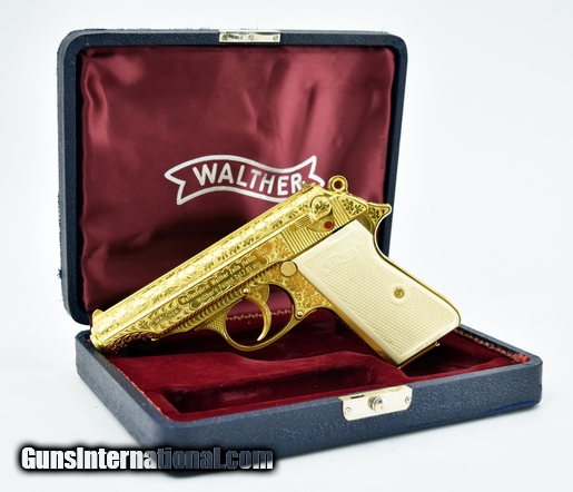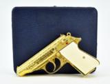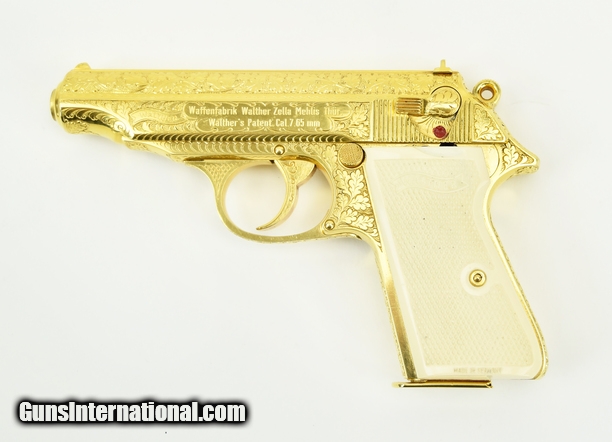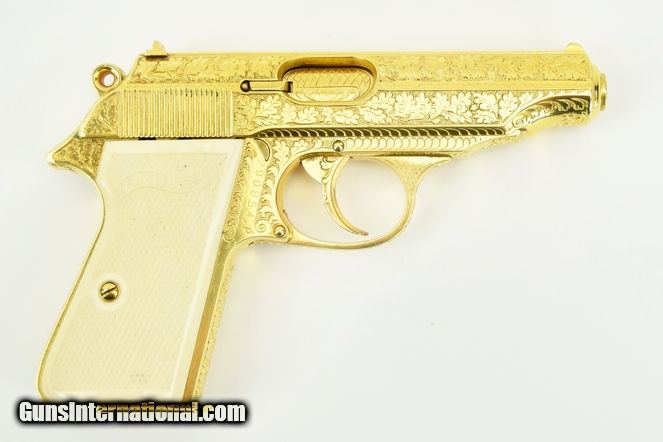 Walther PP 7.65mm caliber pistol. War-time Eagle –N pistol with post-war style engraving, possibly a pre-production prototype. Has correct Post-War factory grips and case. A beautiful and unusual gun in excellent condition.