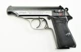 Walther PP 7.65mm caliber pistol. Prewar Walther PP. Crown “N” proofed. Excellent bore. 98% blue. Action works perfectly. Beautiful commercial pre-war PP!