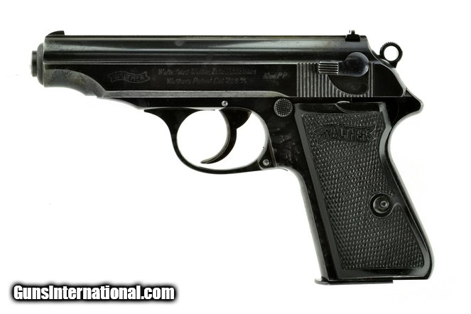 Walther PP 7.65mm caliber pistol. Commercial PP model with crown “N” proof. Bore is excellent. Gun has approximately 90-93% blue. The blue has some spots (not pits) scattered, on frame and a slide. Priced reasonably for a pre-1939 Walther PP! An early large loop hammer!