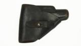 Walther PPK .32 ACP caliber pistol. Very fine wartime commercial PPK with holster (DRGM) marked and extra magazine. Gun has an excellent bore. Grips are excellent with no cracks. Gun has 98% original blue. Eagle “N” proofed. Holster is correct and shows wear even though gun does not, but that’s how we got it.