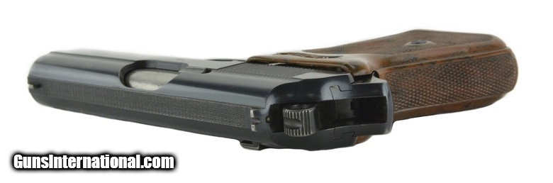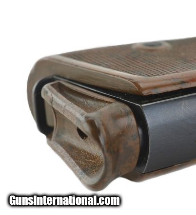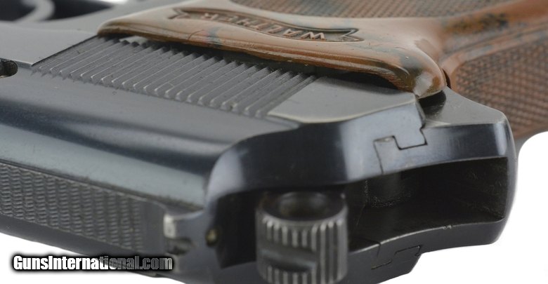 Description: Walther PPK .32 ACP caliber pistol. RZM marked PPK with 90 degree safety lever. Bore is excellent. Action works perfectly. Grips have no chips or cracks. Gun has the finger extension magazine. A Great many PPK’s have warped grips, some more so than others. This gun has minor warping that does not detract from the overall very fine appearance of the gun.