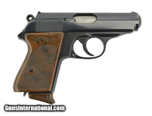 Walther PPK .32 ACP caliber pistol. RZM marked PPK with 90 degree safety lever. Bore is excellent. Action works perfectly. Grips have no chips or cracks. Gun has the finger extension magazine. A Great many PPK’s have warped grips, some more so than others. This gun has minor warping that does not detract from the overall very fine appearance of the gun.