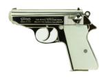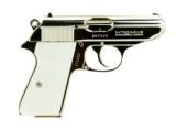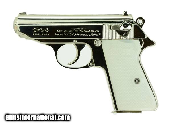 Walther PPK .380 ACP caliber pistol. Interarms model with custom nickel finish and fancy grips.