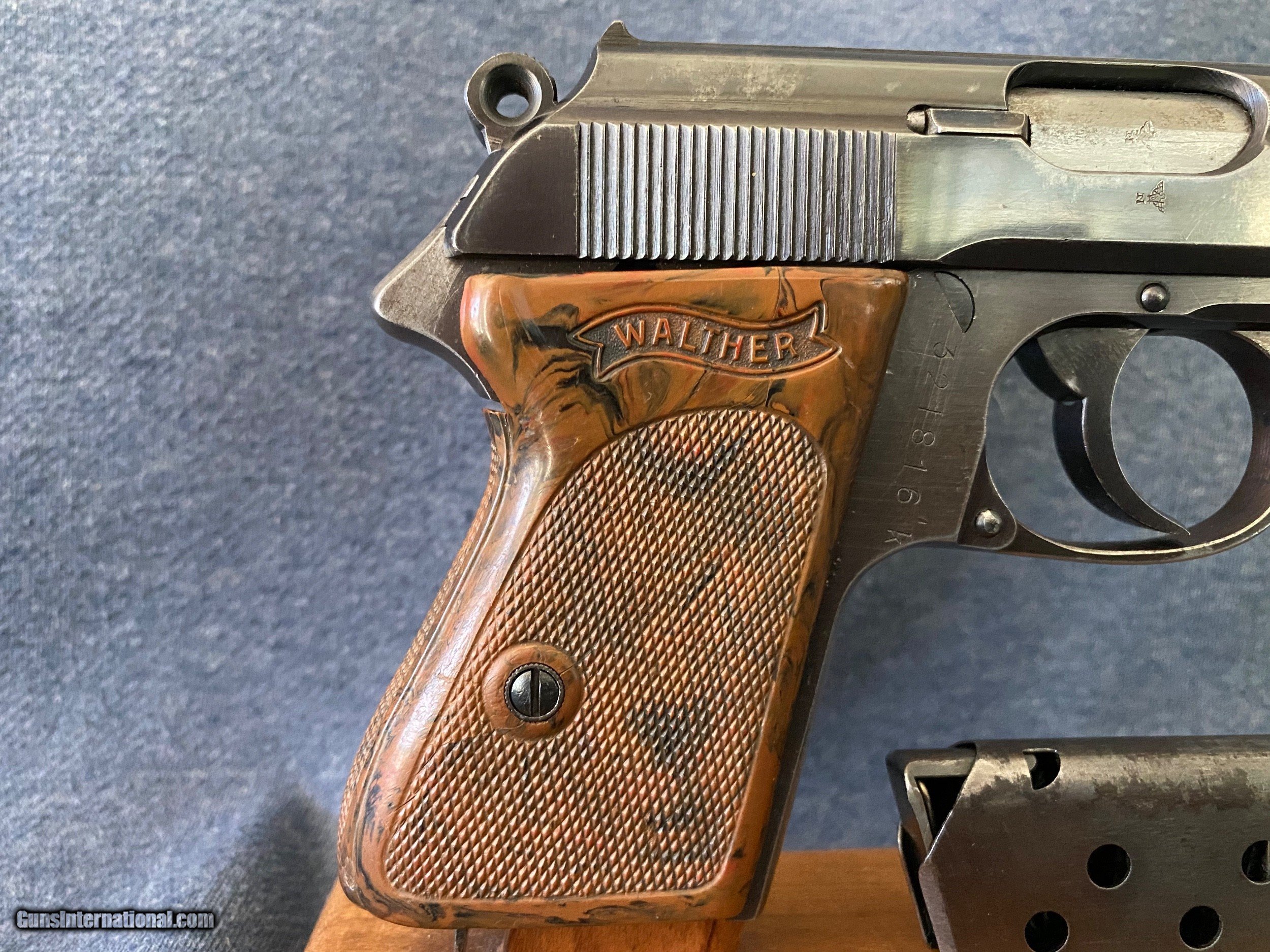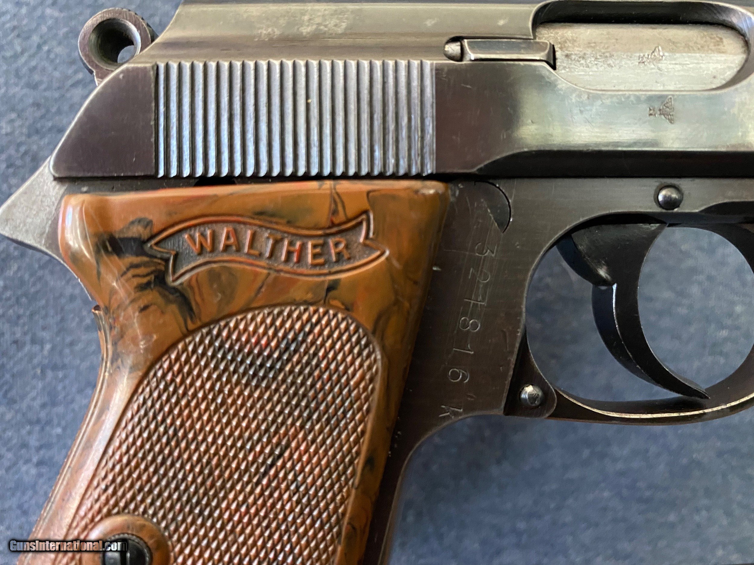 Description: Price reduction! This is an excellent example of a rare military Wather PPK from 1941 properly waffen proofed WAa359 clear and crisp on the frame and slide. This is a variation 2 high polish blue which is 1 of only 26 reported as of the printing of AXIS PISTOLS World War Two 50 year commemorative Issue, by JAN C. Still. On page 48. Out of an estimated 10,000 procured only 26 are reported to still exist this is one of them and it is in great condition. A pistol this rare of any condition would be worth collecting but this pistol is in nice shape look at the Beatiful fire blue safety still mint see photos! The grips are beautiful and great coloring. There is a small chip on the left side where the safety nearly always scrapes and breaks it , visible in photos. very common with the ppk $85.00 2 day shipping from my ffl to yours I am not a dealer this comes out of my personal collection. The military PPK was carried by high ranking officers only and this war trophy shows obvious wear that it was carried and used throughout the war this pistol is a must have for any serous ww2 collector and they are getting hard to come by nowadays in this great of condition see photos a real investment in highly collectible Nazi army pistols.all corrrect and matching,with great bore, hard to upgrade! A very attractive pistol that is over 80 years old and was used in the biggest war in the world, a real piece of history that is highly collectible feel free to call with questions call about layaway options! USPS money order only call about Zelle. And Venmo ,Comes with one correct war time magazine see photo of it added.. SOLD Curio/Relic: Yes |