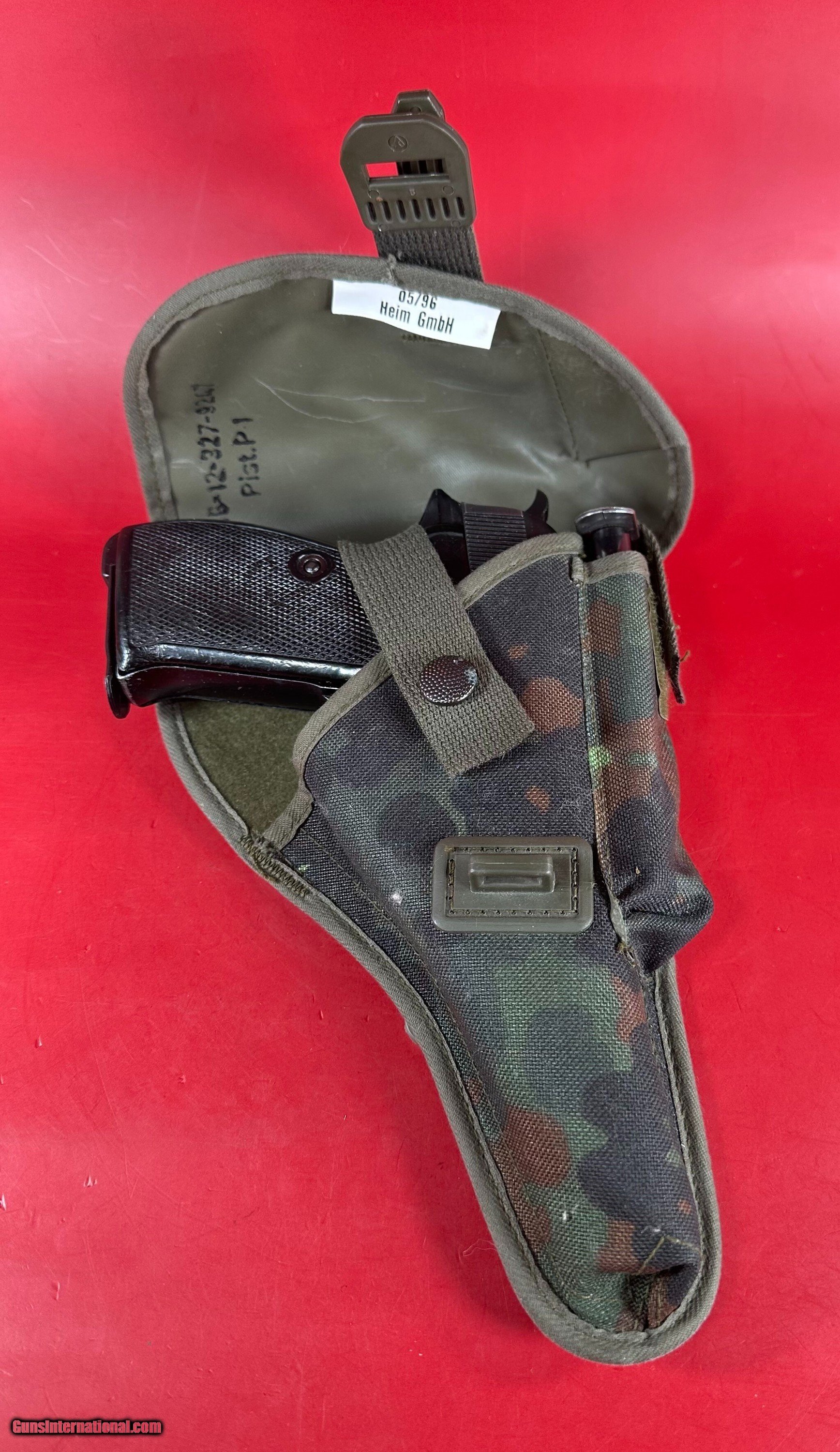 Description: For sale is a very nice 1977 Walther Model P1 (P38 P-38 P.38 P 38) that was manufactured in 1977 and is chambered in 9mm Luger. The barrel measures 5" in length and the bore is in excellent condition. This pistol was made in West Germany for the West German Military (Bundeswehr). This is a post-war variation of the P-38 with a steel slide and an alloy frame. The sale includes 2 8rd magazines and German camo holster with belt adaptor. The matte finish on the slide and barrel is in excellent condition, about 98%, aluminum about 97%. The checkered black plastic grips are in very good condition, about 98%, bore is excellent. The action works as it should. Please refer to pictures for details. This gun will be a great addition to any collection, don't miss it. Layaway and no interest payment plan are available Handgun Caliber: 9x19mm Parabellum (9mm Luger, 9x19mm NATO) Price: $749.00 Shipping: $39.00 Contact Seller |