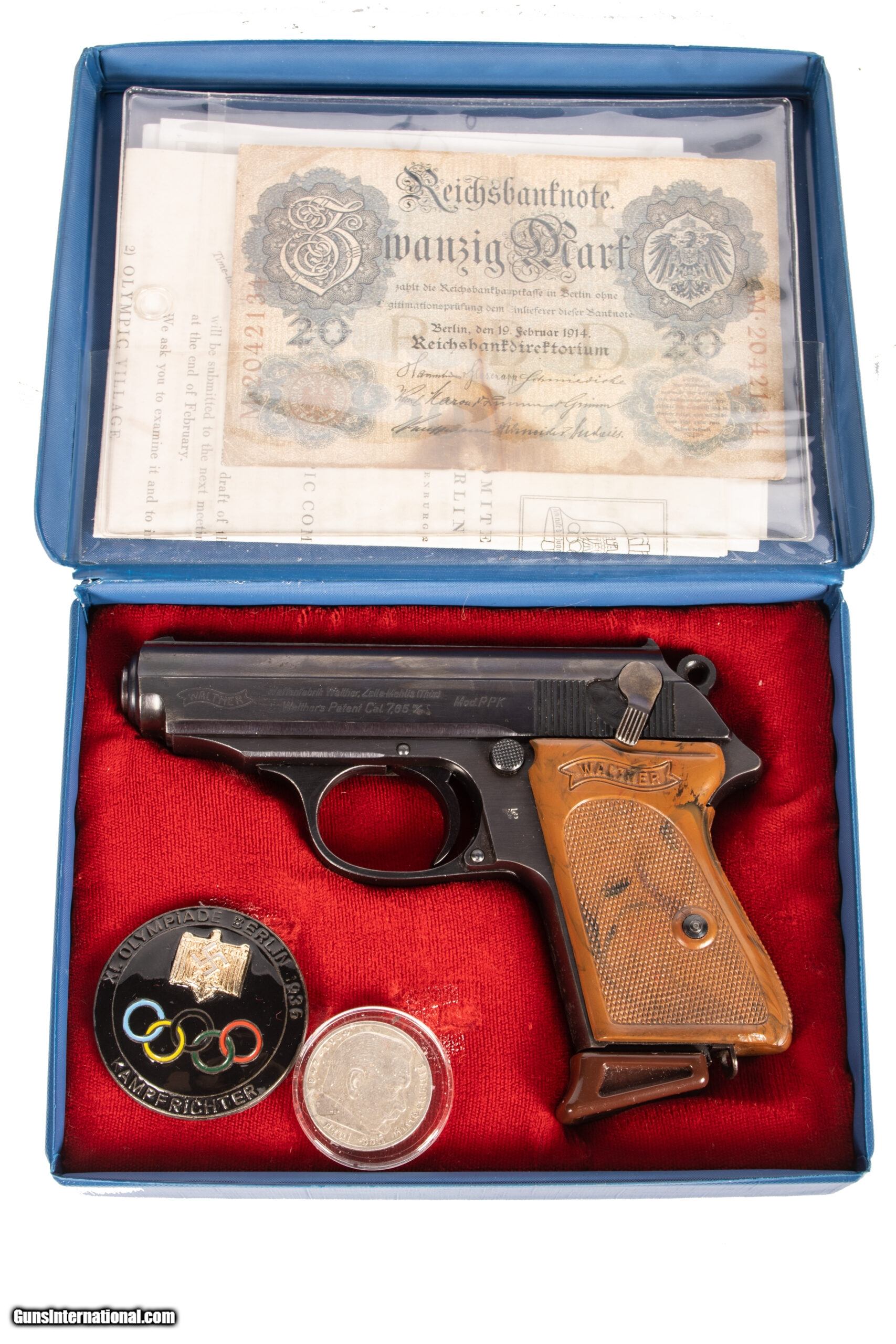 Description: Walther PPK manufactured 1941 chambered in 32 ACP/7.65 mm with a 3 1/4 inch barrel, bright & shiny bore, 3rd Reich markings, display case, 1936 Olympic coins, and documents. The NRA grading condition for this USED firearm is Excellent. Dury's Lifetime Warranty: All firearms purchased from Dury’s Gun Shop, NEW or USED, are covered by a lifetime warranty. We will repair or replace, at our discretion, any firearm purchased from Dury’s Gun Shop, Inc. for as long as it is owned by the purchaser. This warranty is not transferable. WE BUY GUNS! NO COLLECTION TOO BIG OR SMALL FOR OUR GUNS INTERNATIONAL CUSTOMERS ALL OF OUR FIREARMS CAN BE PURCHASED DIRECTLY FROM OUR DURY'S GUNS ! SOLD Curio/Relic: Yes Manufacturer: Walther Model: PPK Caliber Info: 32 ACP (7.65mm) Barrels: 3inches |