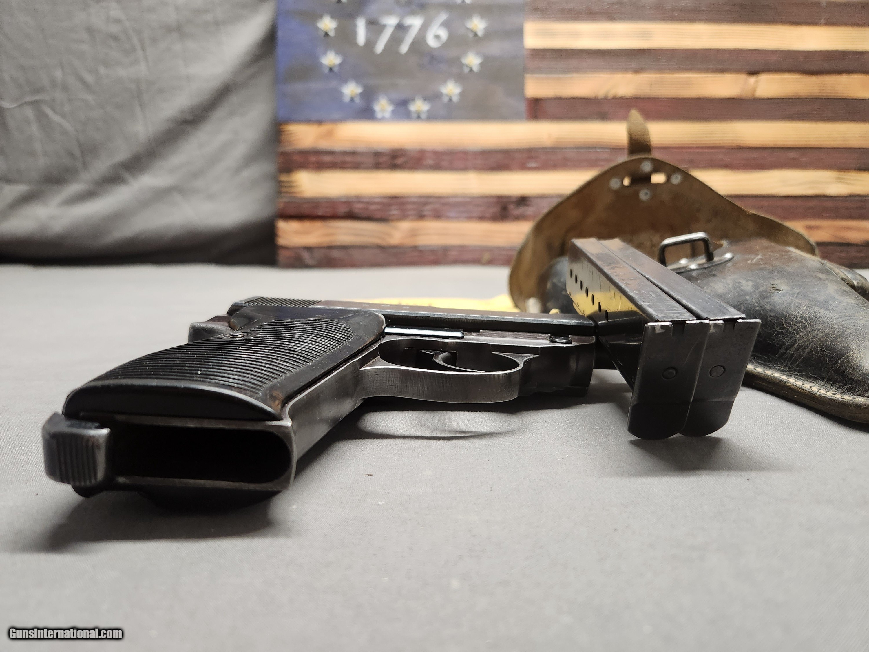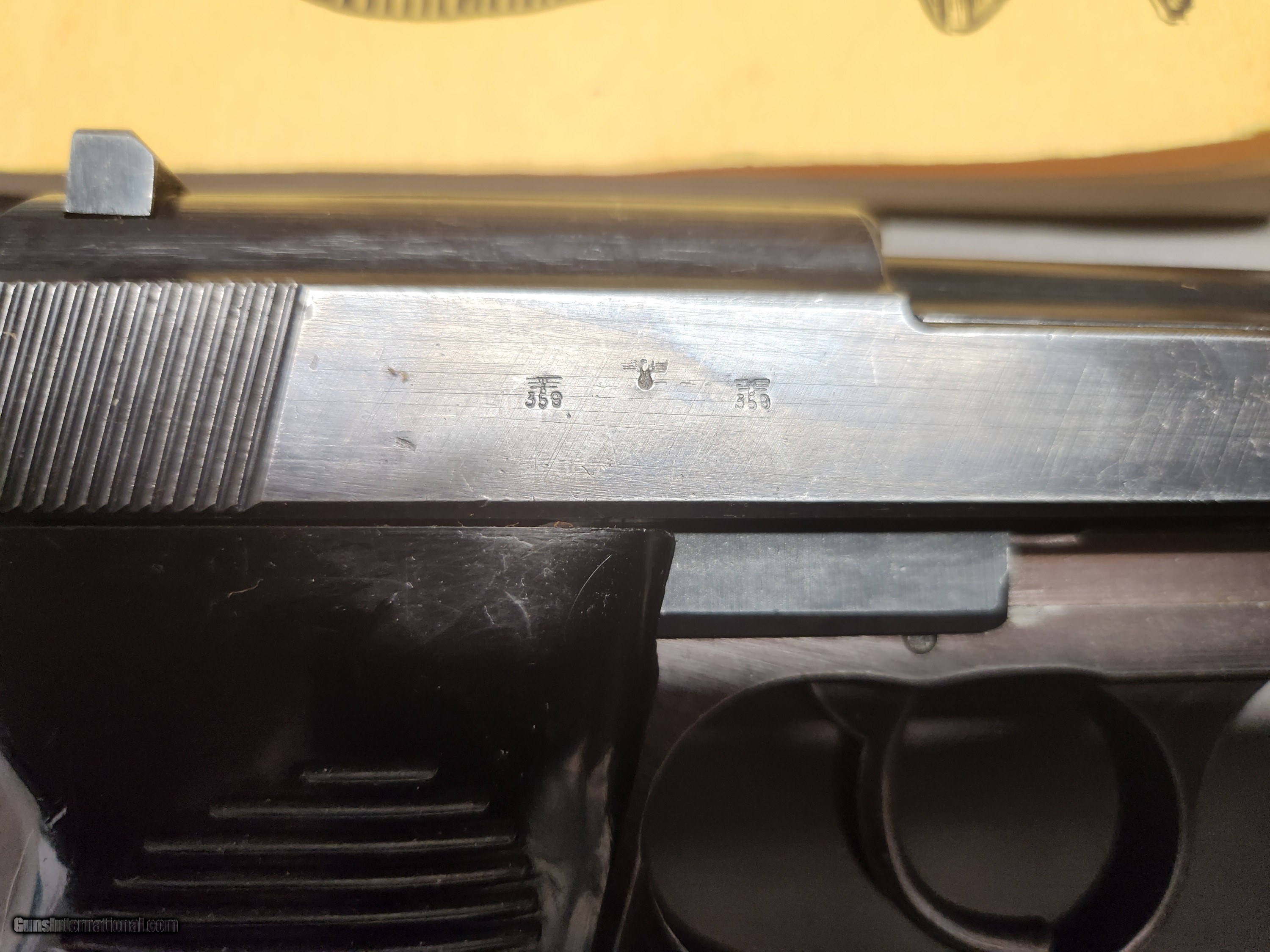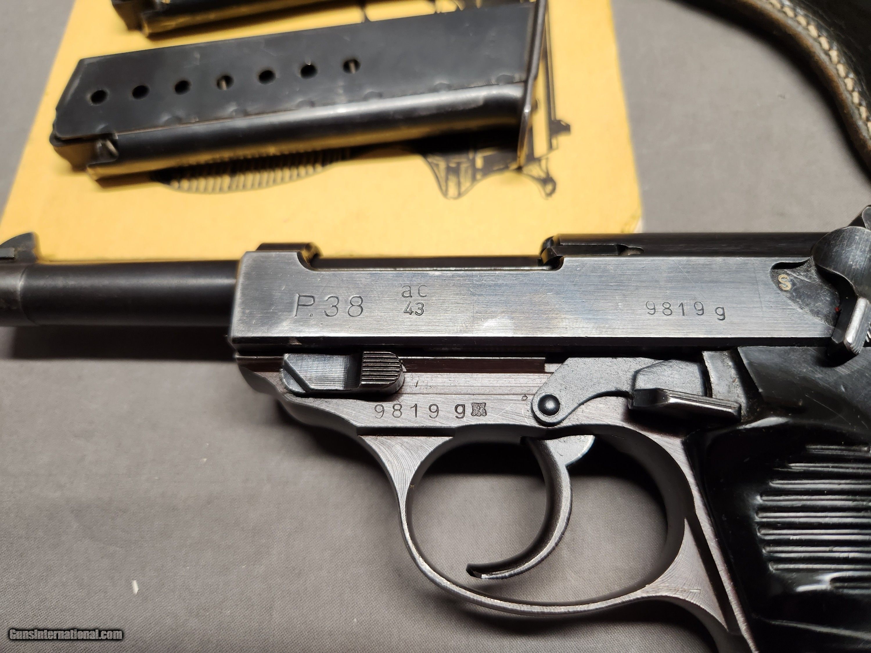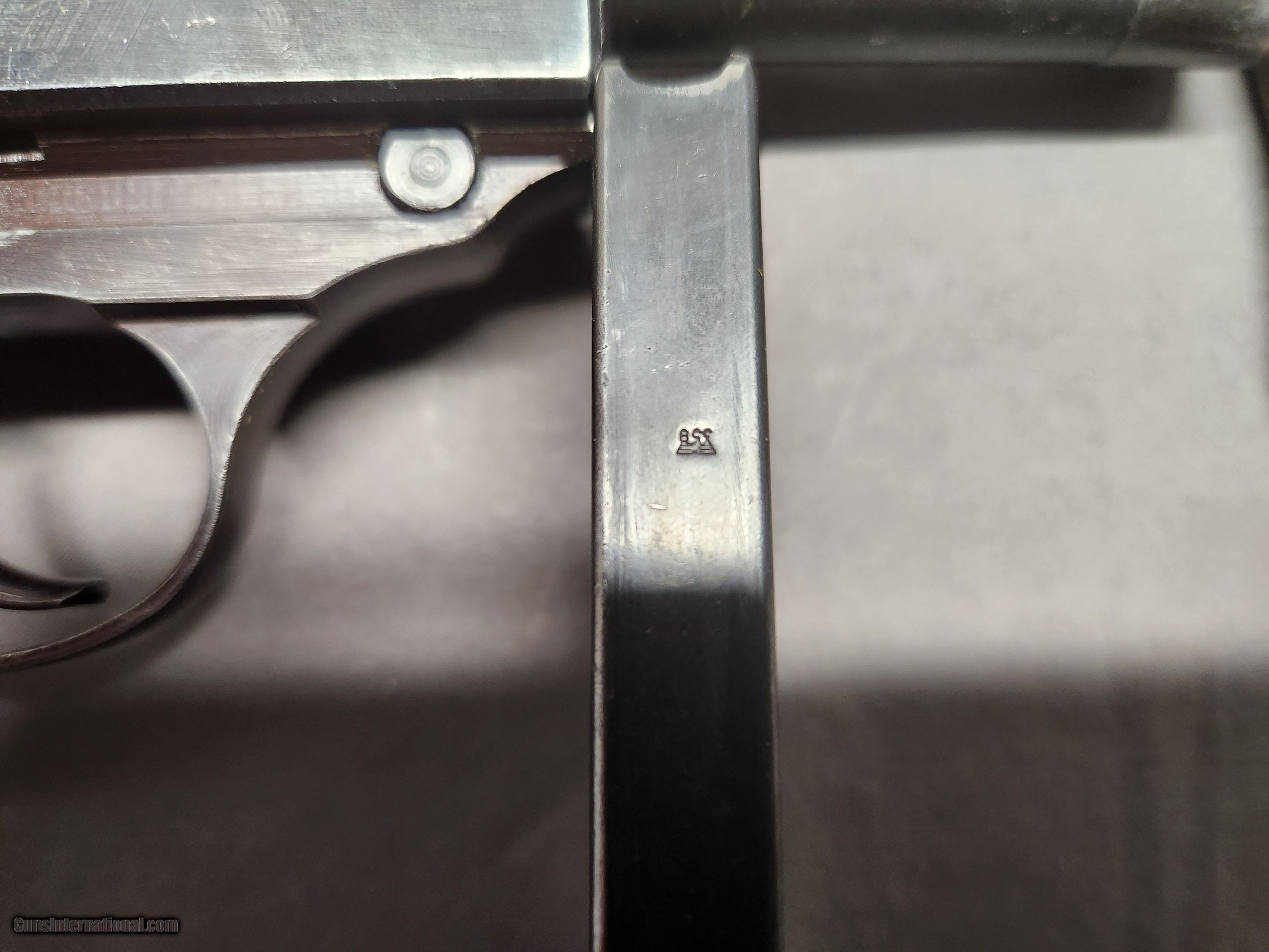 Description: German Walther “ac/43” code P.38 Pistol, made in 1943 in Zella-Mehlis. The P.38 was designed by Walther to replace the Luger P.08 as the standard service weapon for the Third Reich’s Wehrmacht. The Luger was a ground-breaking design, but quite expensive to produce. The P.38 was the first locking breech pistol to feature the double/single action firing mechanism with a decocking safety lever, a prelude to many modern pistols to come. It also features a loaded chamber indicator that is both visible and tactile, extending out of the top rear of the slide, just above the hammer. We review all offers. Shipping on all handgun $45.00 Shipping on Long gun long $125.00 Please review all photo's as we do our best to take photos of all imperfections of the firearms. To purchase a firearm from us we need you to do the following. 1. Send an e-mail stating that you would like to purchase the firearm. Please include your name, address, and phone number. We also need to know how you will be paying for the firearm, Cashier’s Check, Money Order, Personal Check, or Debit/Credit Card up charge on Debit/Credit Card 3%. We also need the FFL Dealer's Name and Phone number we will be shipping the firearm to. After we receive this information, we will e-mail you over the invoice with the total due. If payment is not received within 5 business days the firearm will be relisted. Thank you for looking! Ron SOLD Handgun Caliber: 9x19mm Parabellum (9mm Luger, 9x19mm NATO) Manufacturer: Walther Model: P-38 Serial Number: 9819G Condition: 95%+ Manufacture Date: 1943 |