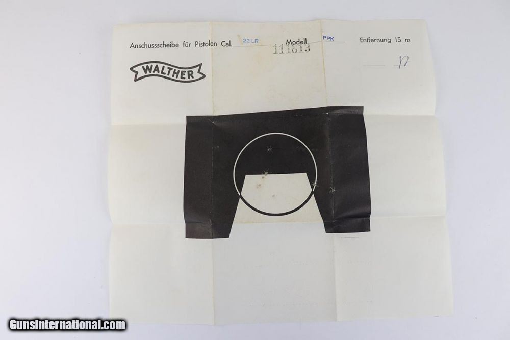 Description: This is an 'as new in the box' early Walther PPK, made in 1968, chambered in desirable .22LR and made in West Germany. This example appears new and unfired with a matching box and test target, cleaning rod, a small tool, original manual and an extra magazine. The grips are very aesthetically pleasing black plastic, unlike the more common brown. There are no import markings on the gun, but it is the grip style with Interarms marking on grip. West German marking and proofs are present and sharp. This set is a 'time capsule' that is bound to continue appreciating in value. Cannot be upgraded. SOLD Curio/Relic: Yes Manufacturer: Walther Model: PPK Serial Number: 111813LR Caliber Info: .22LR Condition: Mint Bore Condition: Mint Manufacture Date: 1968 |