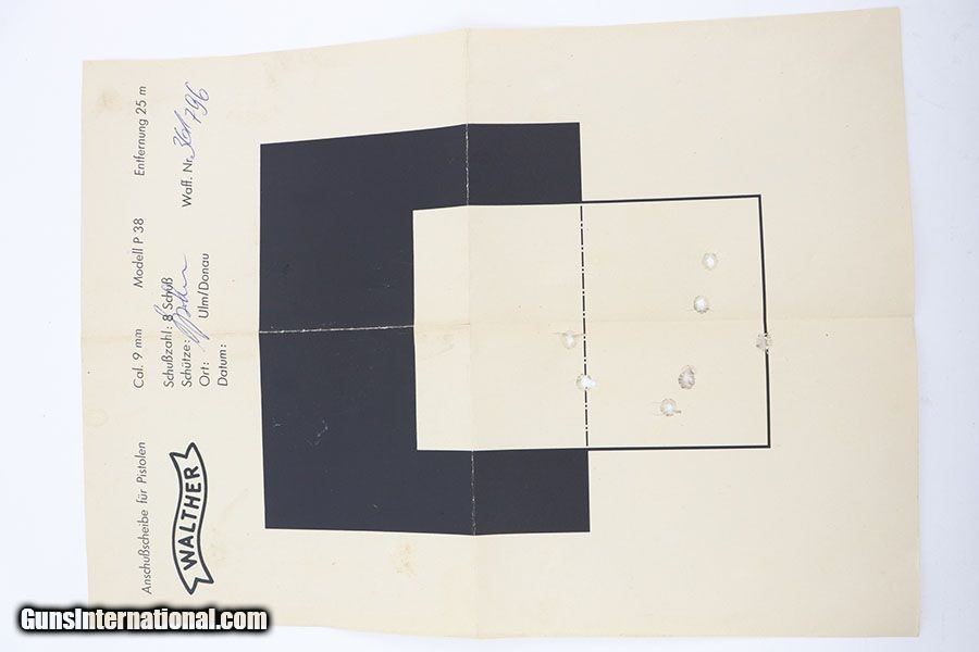 Description: This is an ANIB Walther P.38 pistol, manufactured in 1974. It is all matching, has an aluminum frame, and is chambered in 9mm. The gun comes with the original box and test target (both serialized to the gun), cleaning rod, manual and two magazines. The gun is in like-new condition. The gun is fully functional and the bore is mint. SOLD Handgun Caliber: 9x19mm Parabellum (9mm Luger, 9x19mm NATO) Manufacturer: Walther Model: P.38 Serial Number: 361796 Condition: Mint Bore Condition: Mint Manufacture Date: 1974 |