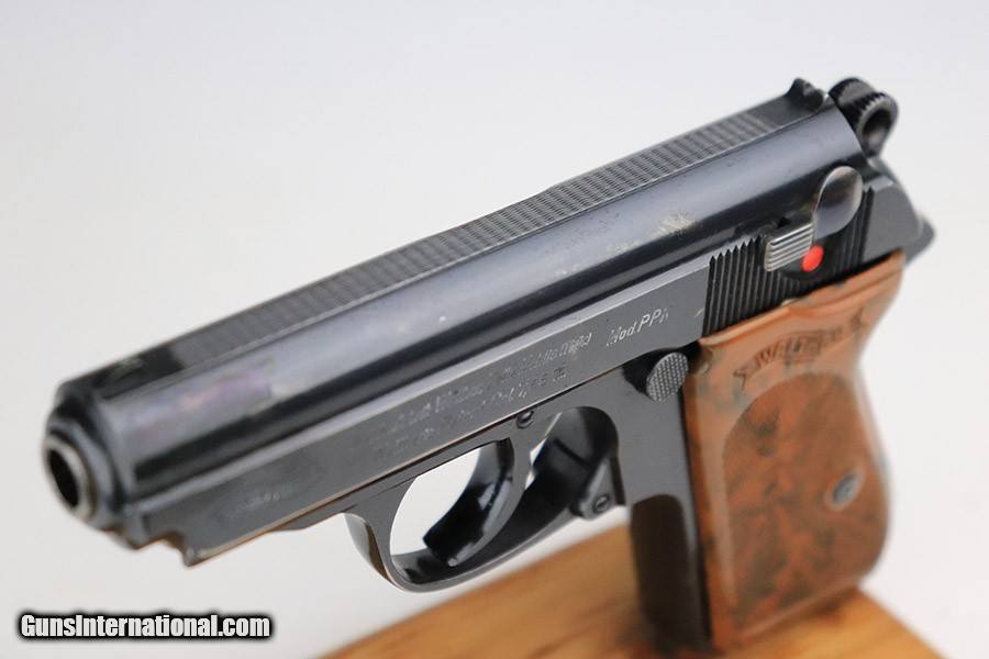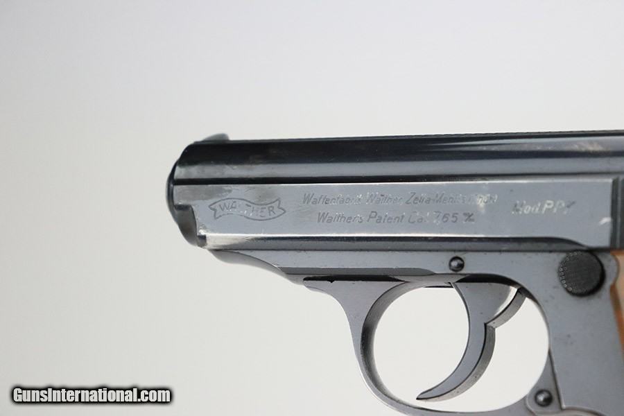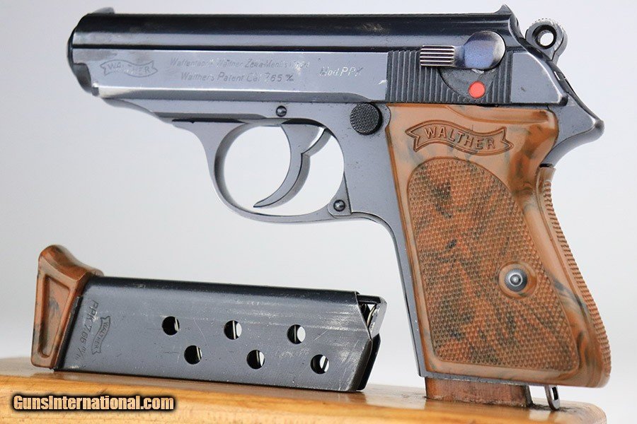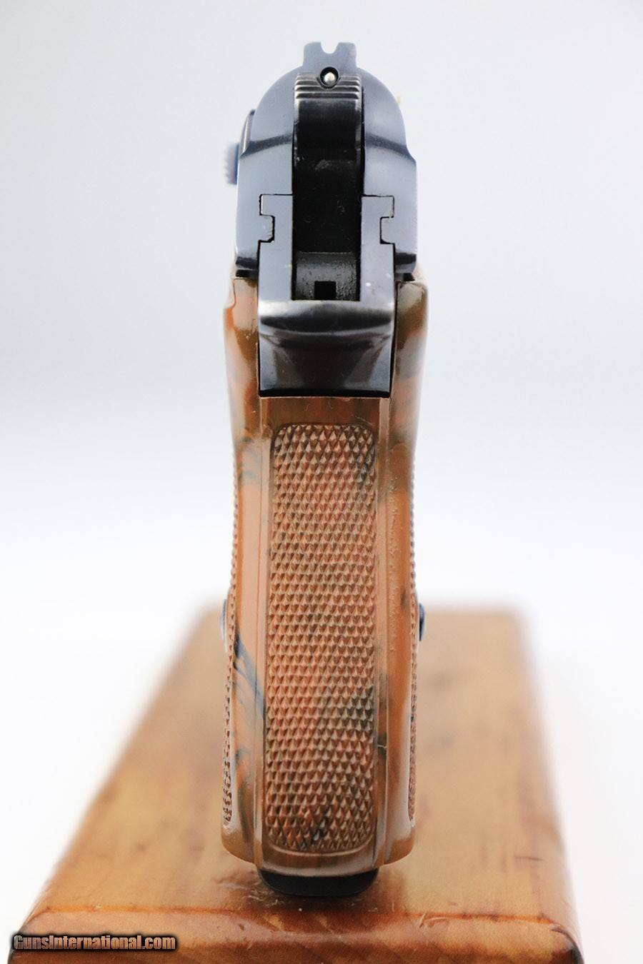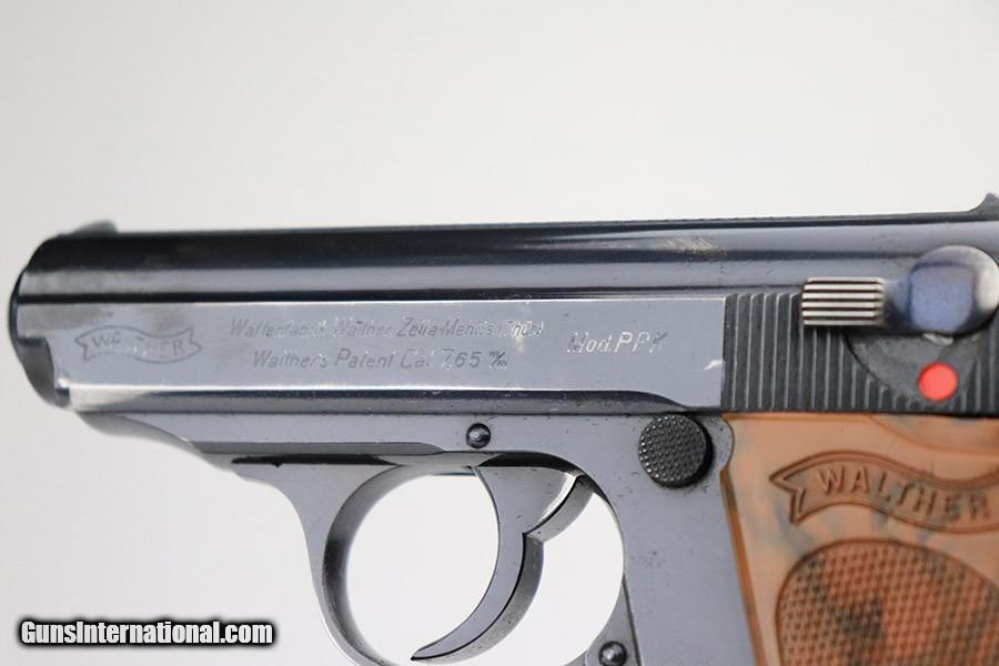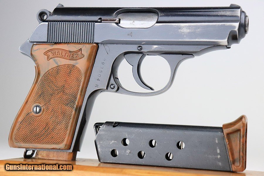 Description: 11/16/22 - This is a very nice example of a Walther PPK sold in the commercial market in 1940. It is all matching and has the proper "Eagle N" commercial proofs. It has retained about 93% of its original high polish finish. There is light spotty wear along both sides of the slide, concentrated mostly around the high edges. There is an area of minor discoloration around the left side of the muzzle. Comes with an excellent brown Walther grip (hairline crack around the right screw) and one wartime finger extension magazine. The bore has good rifling with minor frosting throughout. SOLD Curio/Relic: Yes Handgun Caliber: .32 ACP (7.65x17mm Browning SR) |