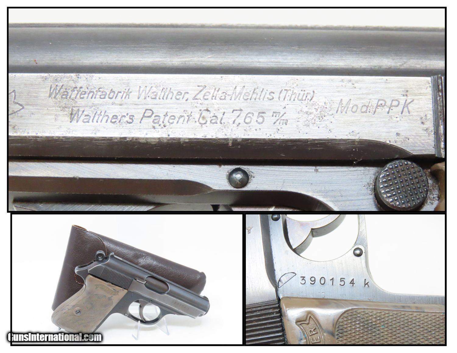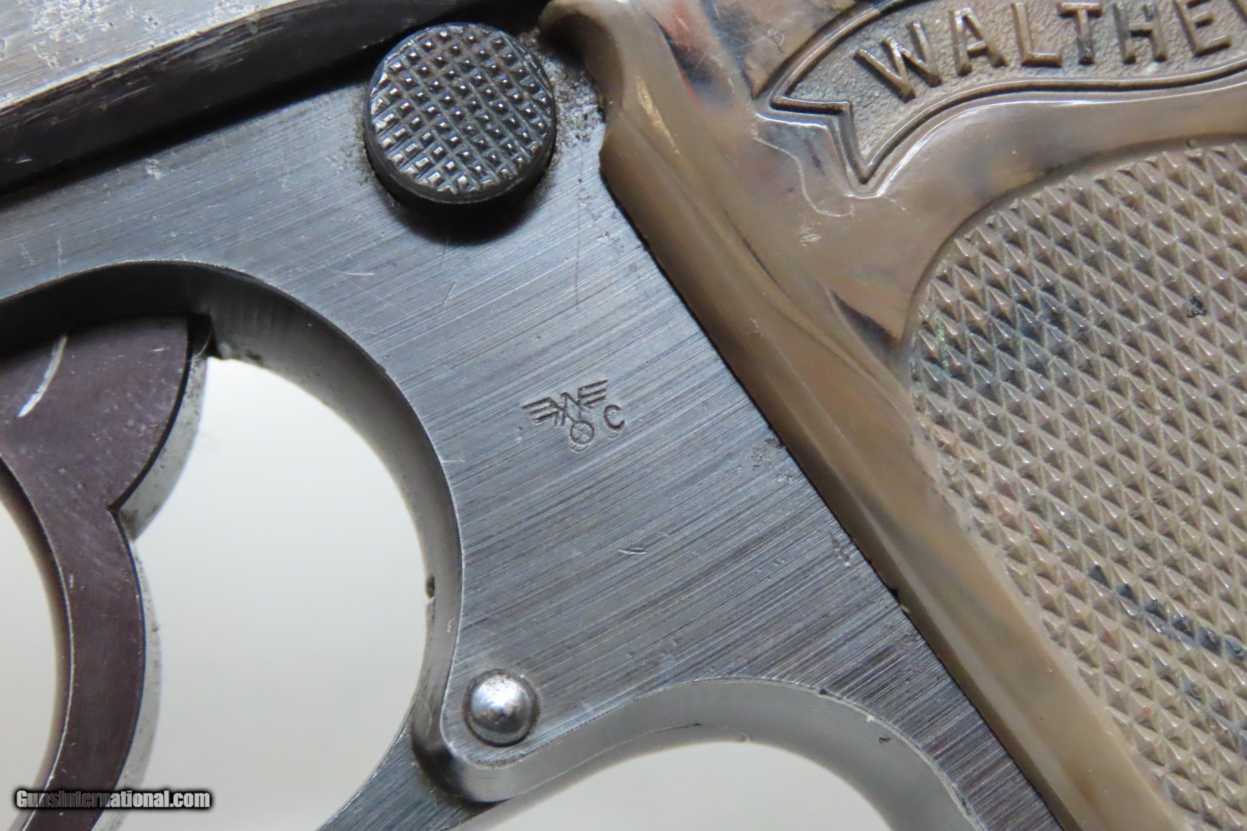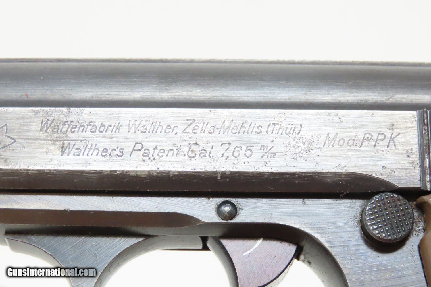 Description: EAGLE/C Police Marked WORLD WAR 2 Nazi German WALTHER Model PPK Pistol C&R Pistol Made Circa 1945 in Zella-Mehlis with HOLSTER Here we present a Walther PPK, made for World War II circa 1945, in Zella-Mehlis, Germany. The PPK (Polizei Pistole Kriminal) was a direct descendant of the slightly larger PP (Polizei Pistole). The PPK was a smaller handgun designed for concealment for detectives, and it featured a capacity of 7 instead of 8 when chambered in 7.65mm (.32 ACP). When WWII began, many different organizations within the Nazi Party and outside made use of these handy and reliable pistols. The PPK was the small pistol most famously used by the fictional spy, James Bond, but was also the pistol supposedly used in Hitler’s alleged suicide. This Walther PP Pistol was made in 1945. This pistol features the “Eagle N” proof marks that were used after 1940, when the proof prior to that was the “Crown/N”. The left side of the frame is marked “WAFFENFABRIK WALTHER/ZALLA MEHLIS/WALTHER’S PATENT CAL 7.65mm”. It is also stamped with the Nazi “Eagle/C” Police marking on the left side of the frame. The overall condition is very good. The action is strong all around. The bore is bright and reflective! The numbers match. The leather holster is in very good shape. A nice example of a police weapon from the Third Reich! This firearm is classified as a Curio & Relic. Barrel is 3-1/4 inches. Caliber: 7.65x17mm Browning (.32 ACP) Overall condition as seen in photos. Very Fast. Very Safe. FREE SHIPPING. Will need to be sent to your local FFL or C&R licensee. This firearm is classified as a Curio & Relic. Guaranteed AUTHENTIC & Includes CERTIFICATE OF AUTHENTICITY. ancestryguns $1935 #201391 SOLD Curio/Relic: Yes |