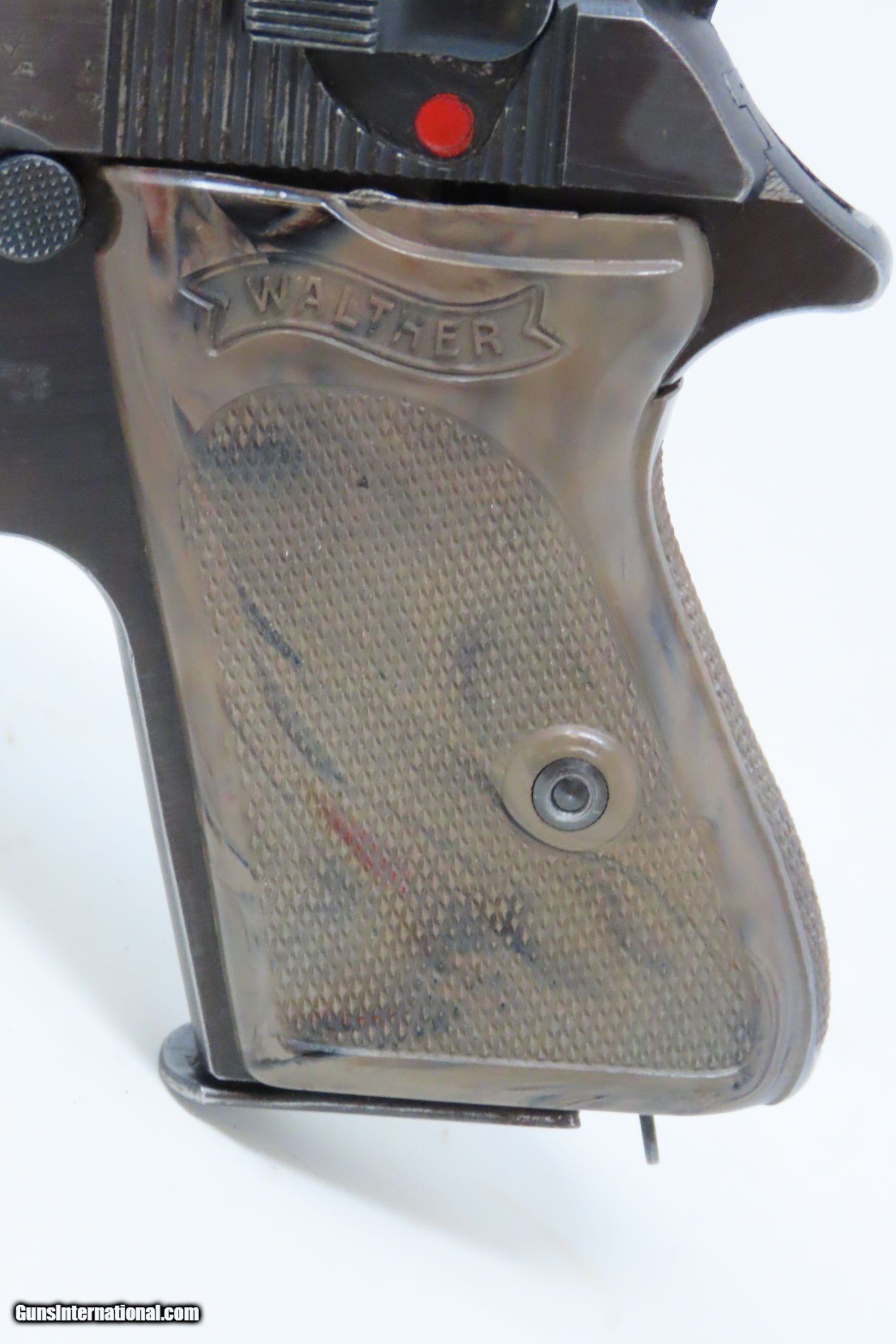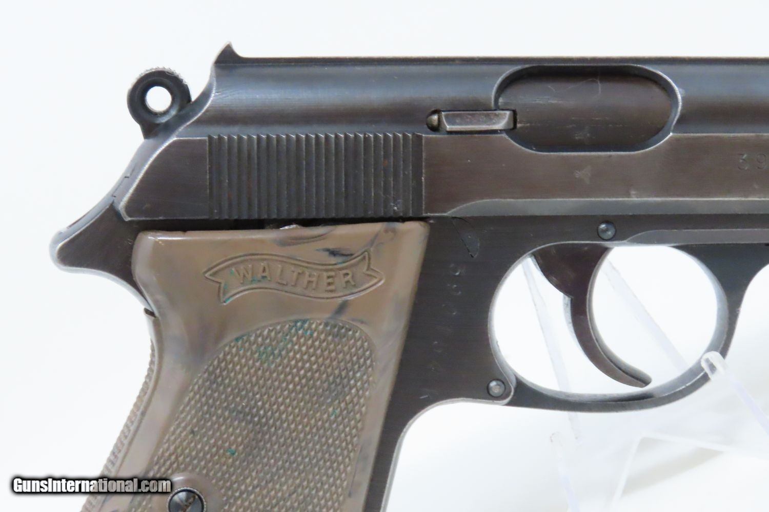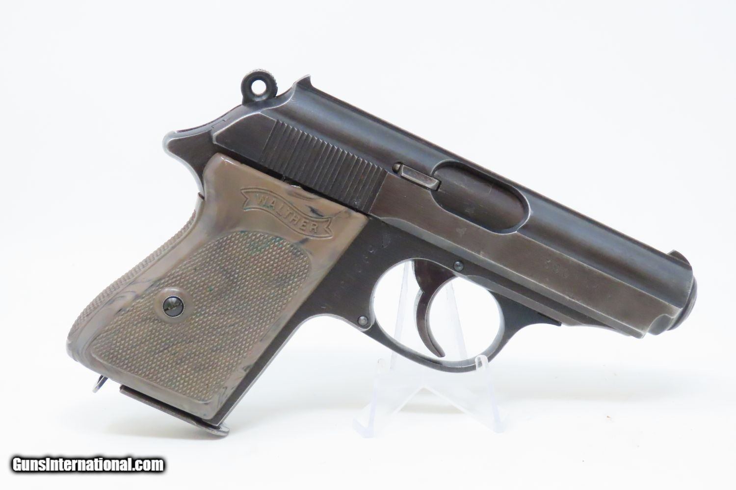 Description: EAGLE/C Police Marked WORLD WAR 2 Nazi German WALTHER Model PPK Pistol C&R Pistol Made Circa 1945 in Zella-Mehlis with HOLSTER Here we present a Walther PPK, made for World War II circa 1945, in Zella-Mehlis, Germany. The PPK (Polizei Pistole Kriminal) was a direct descendant of the slightly larger PP (Polizei Pistole). The PPK was a smaller handgun designed for concealment for detectives, and it featured a capacity of 7 instead of 8 when chambered in 7.65mm (.32 ACP). When WWII began, many different organizations within the Nazi Party and outside made use of these handy and reliable pistols. The PPK was the small pistol most famously used by the fictional spy, James Bond, but was also the pistol supposedly used in Hitler’s alleged suicide. This Walther PP Pistol was made in 1945. This pistol features the “Eagle N” proof marks that were used after 1940, when the proof prior to that was the “Crown/N”. The left side of the frame is marked “WAFFENFABRIK WALTHER/ZALLA MEHLIS/WALTHER’S PATENT CAL 7.65mm”. It is also stamped with the Nazi “Eagle/C” Police marking on the left side of the frame. The overall condition is very good. The action is strong all around. The bore is bright and reflective! The numbers match. The leather holster is in very good shape. A nice example of a police weapon from the Third Reich! This firearm is classified as a Curio & Relic. Barrel is 3-1/4 inches. Caliber: 7.65x17mm Browning (.32 ACP) Overall condition as seen in photos. Very Fast. Very Safe. FREE SHIPPING. Will need to be sent to your local FFL or C&R licensee. This firearm is classified as a Curio & Relic. Guaranteed AUTHENTIC & Includes CERTIFICATE OF AUTHENTICITY. ancestryguns $1935 #201391 SOLD Curio/Relic: Yes |