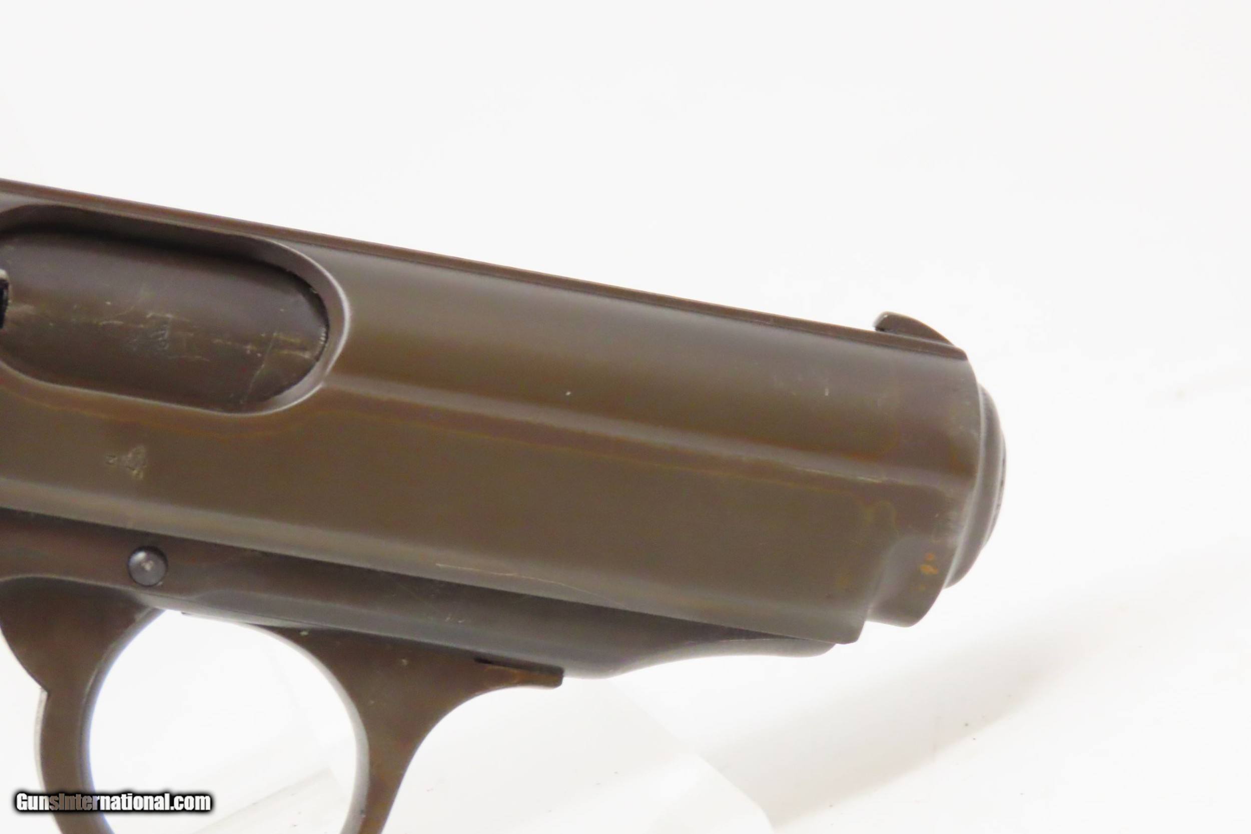 Description: EAGLE/C Police Marked WORLD WAR 2 Nazi German WALTHER Model PPK Pistol C&R Pistol Made Circa 1945 in Zella-Mehlis Here we present a C&R Walther PPK, made for World War II circa 1945, in Zella-Mehlis, Germany. The PPK (Polizei Pistole Kriminal) was a direct descendant of the slightly larger PP (Polizei Pistole). The PPK was a smaller handgun designed for concealment for detectives, and it featured a capacity of 7 instead of 8 when chambered in 7.65mm (.32 ACP). When WWII began, many different organizations within the Nazi Party and outside made use of these handy and reliable pistols. The PPK was the small pistol most famously used by the fictional spy, James Bond, but was also the pistol supposedly used in Hitler’s alleged suicide. The left side of the frame is marked “WAFFENFABRIK WALTHER, ZALLA MEHLIS (Thur.)/WALTHER’S PATENT CAL. 7.65m/m”. It is also stamped with the Nazi “Eagle/C” Police marking on the left side of the frame. The original grips are brown brindle with the Walther banner. The overall condition is very good. Refinished. The action is excellent and the bore is bright with sharp rifling. The grips are in great shape. A scarce Walther PPK for the police during the Third Reich. This firearm is classified as a Curio & Relic. Barrel is 3-1/4 inches. Caliber: 7.65mm Browning (.32 ACP) Overall condition as seen in photos. Very Fast. Very Safe. FREE SHIPPING. Will need to be sent to your local FFL or C&R licensee. This firearm is classified as a Curio & Relic. Guaranteed AUTHENTIC & Includes CERTIFICATE OF AUTHENTICITY. ancestryguns $2465 #217902 SOLD Curio/Relic: Yes |