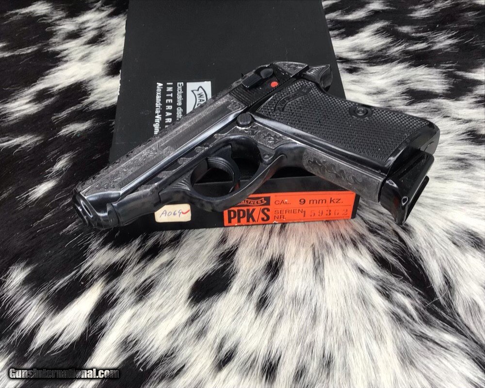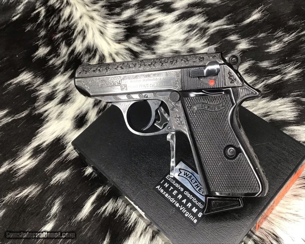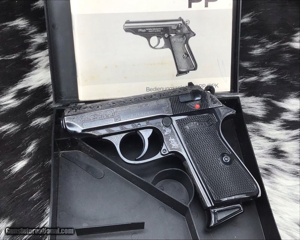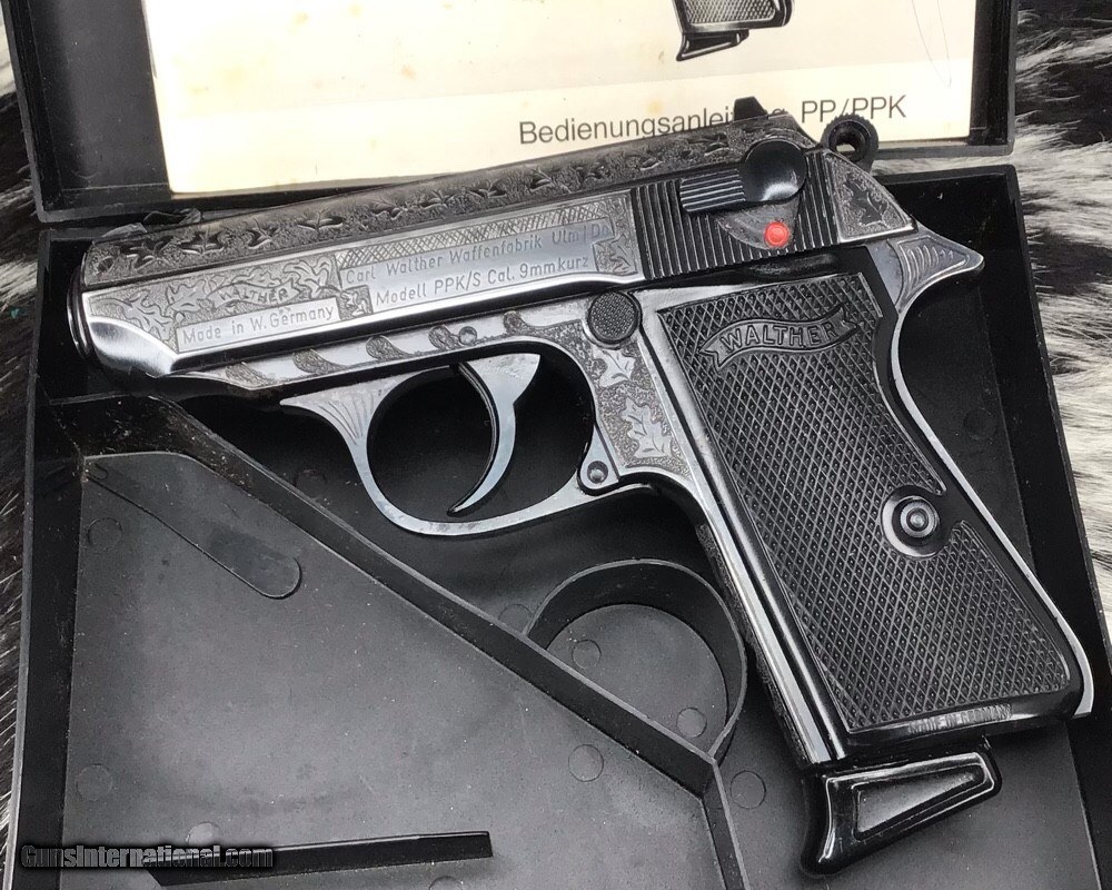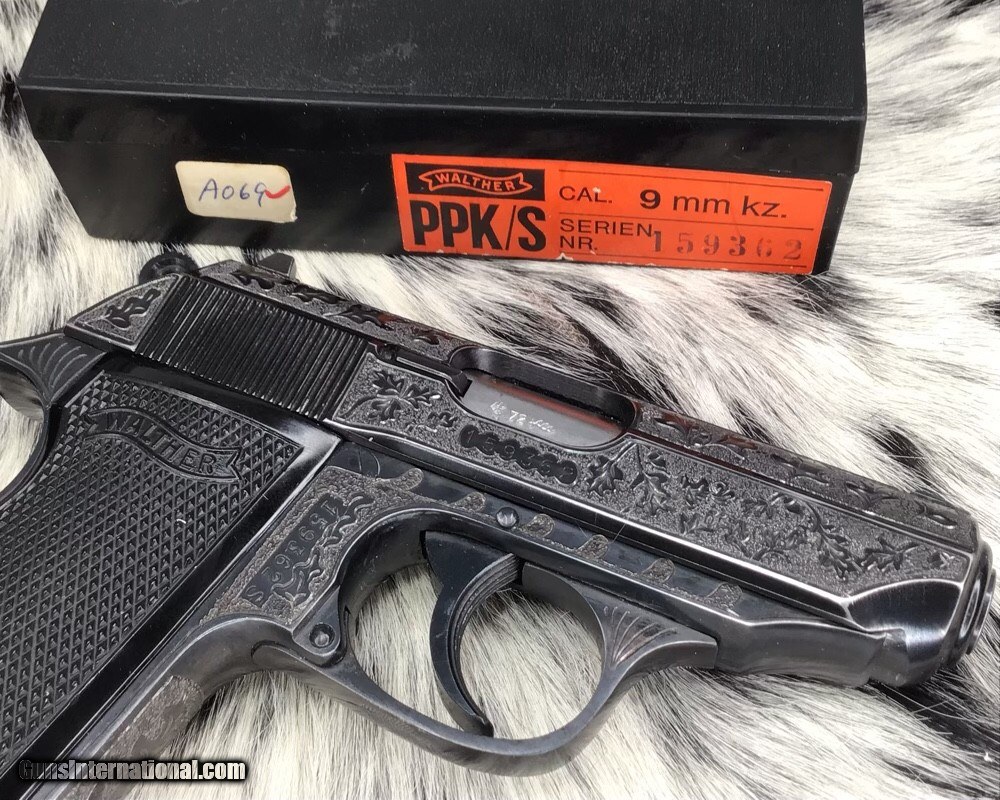 Engraved 1972 Walther PPK/S, .380 acp, matching box,Blued, Bern Germany