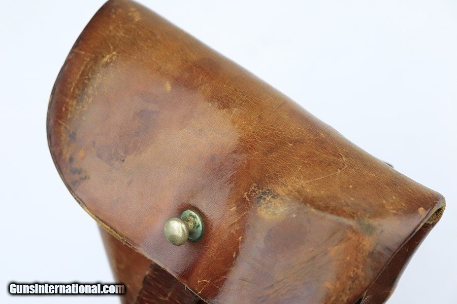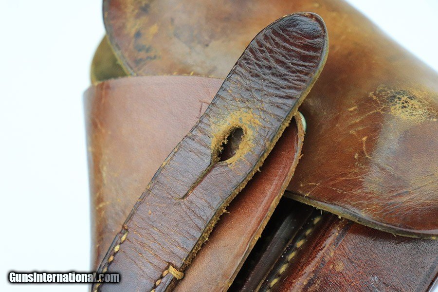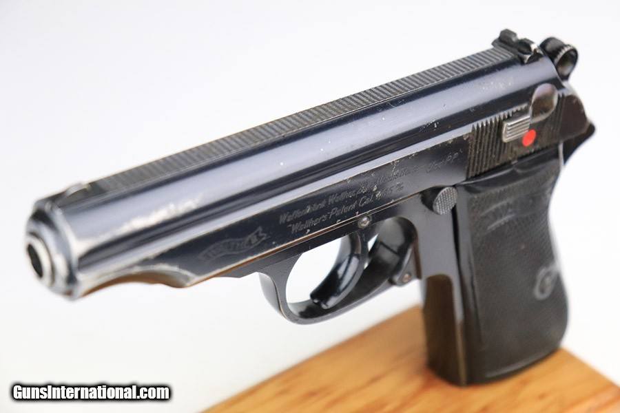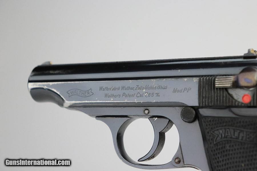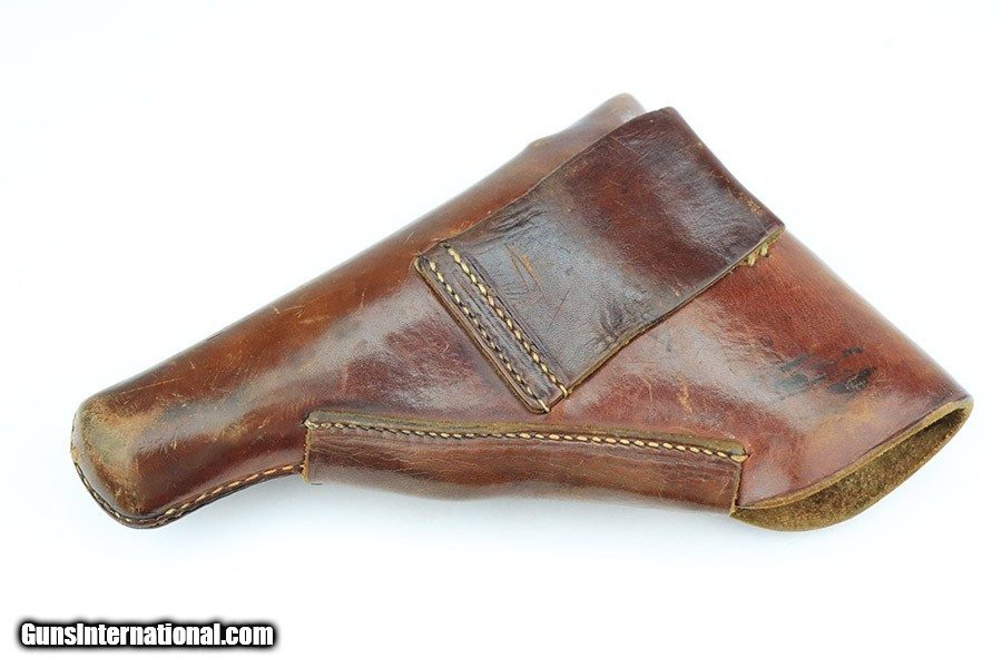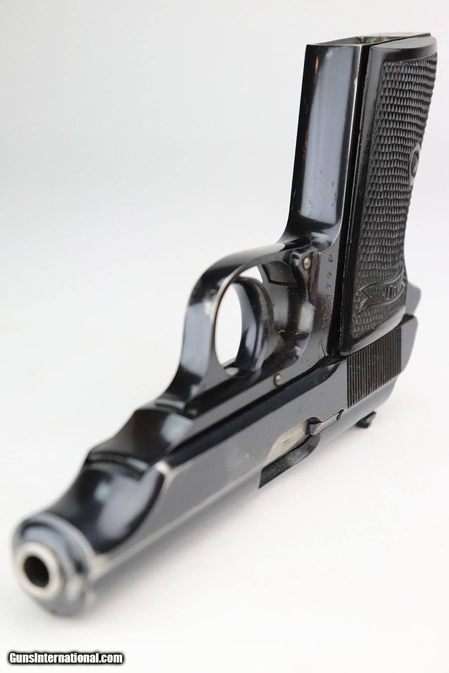Description: This is an excellent example of a Walther PP sold in the commercial market in 1938. It is all matching and has the proper "Crown N" commercial proofs. It comes as a rig with a nice tan leather Akah holster, a finger extension Walther banner magazine, and a spare flat bottom Walther banner magazine. The gun itself has retained about 95% of its original high polish finish with wear around the muzzle and along the high edges of the slide. One area of light wear on the right side of the slide. While there isn't a ton of actual finish loss, there are tiny dots of discoloration along the left side of the slide. Comes with nice period-correct black bakelite grips - there is a crack along the edge of the left grip panel. Minty bore. The front and rear sights have old white paint on them. SOLD Curio/Relic: Yes Handgun Caliber: .32 ACP (7.65x17mm Browning SR) |