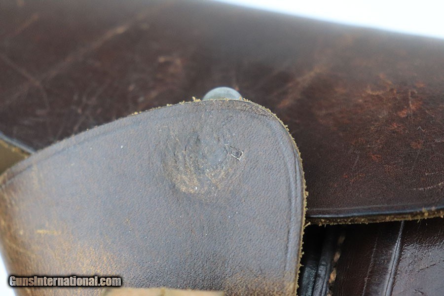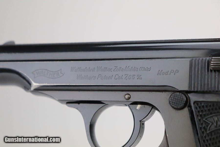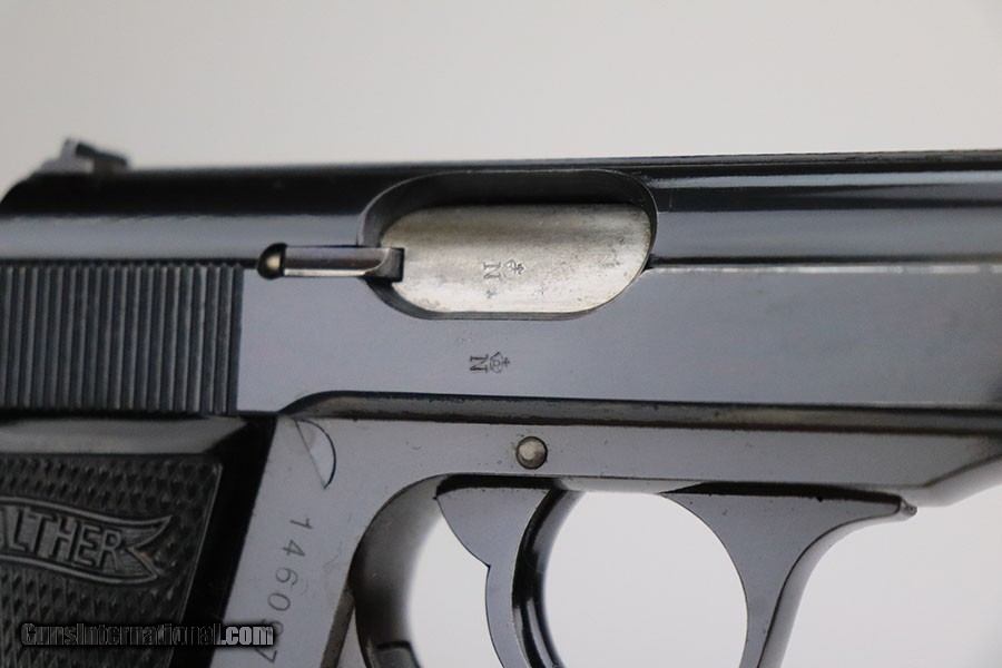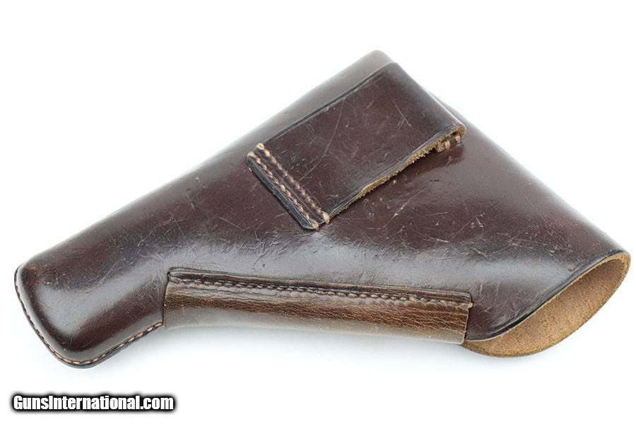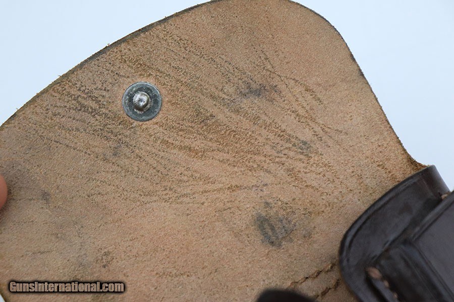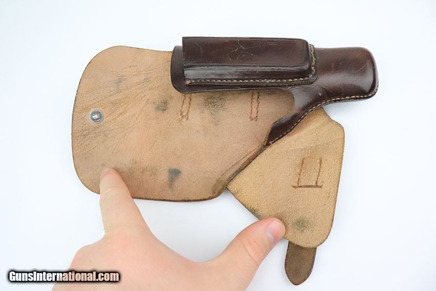 Description: This is an excellent commercial Walther PP from 1940 with Akah holster. The pistol is matching and original with 95-96% high-polish blue remaining. Minor muzzle wear on each side, and a little bit of finish loss on the bottom of both straps. The straps also show minor oxidation. Minty bore. Excellent grips with no cracks or chips. Comes with an original Akah holster in terrific condition. Minor handling wear but no notable defects. Postwar magazine. SOLD Curio/Relic: Yes Handgun Caliber: .32 ACP (7.65x17mm Browning SR) |
