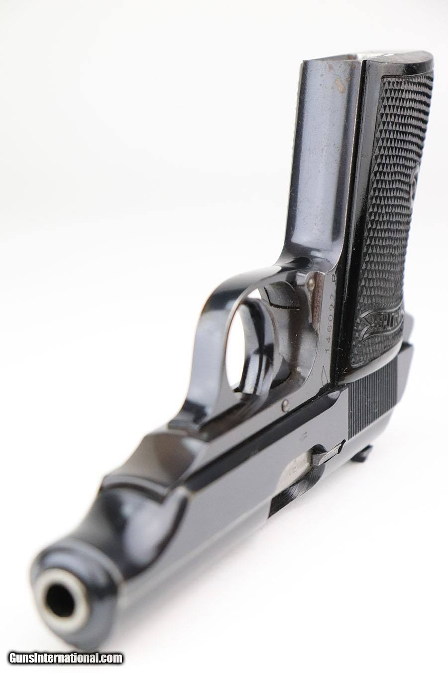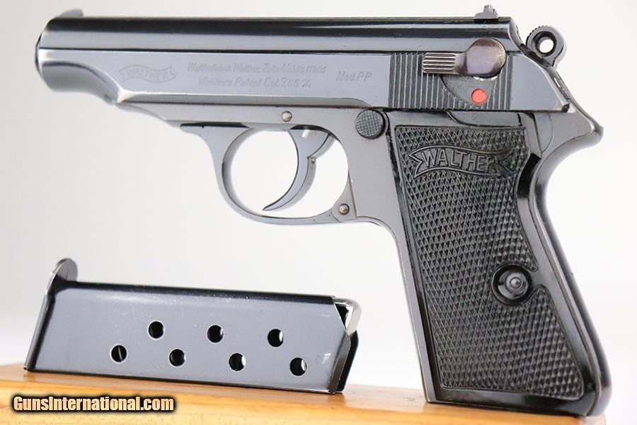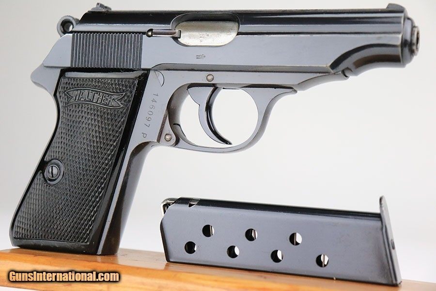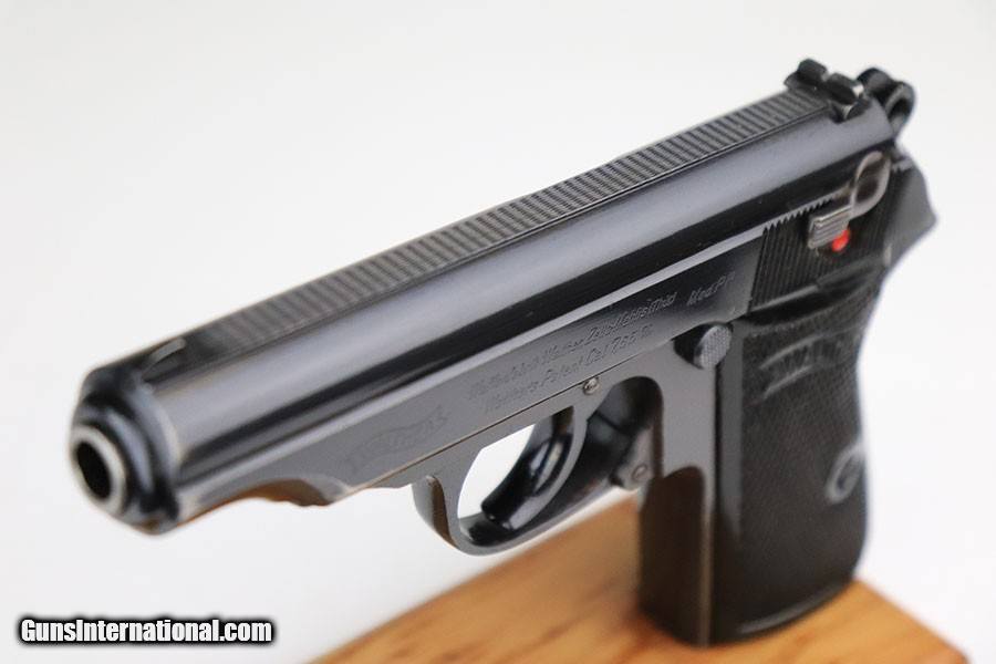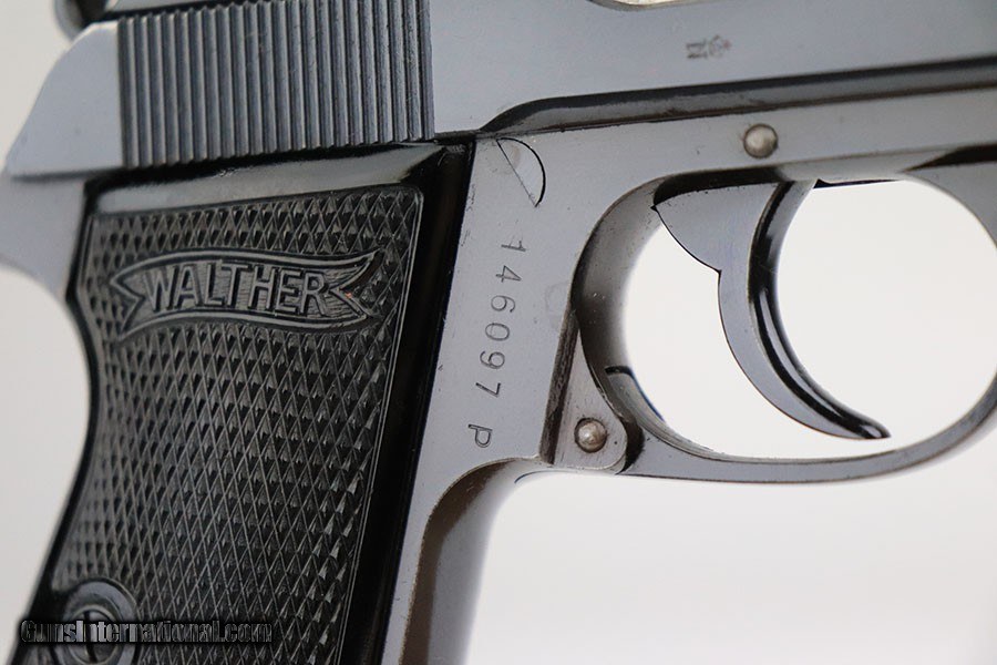Description: This is an excellent commercial Walther PP from 1940 with Akah holster. The pistol is matching and original with 95-96% high-polish blue remaining. Minor muzzle wear on each side, and a little bit of finish loss on the bottom of both straps. The straps also show minor oxidation. Minty bore. Excellent grips with no cracks or chips. Comes with an original Akah holster in terrific condition. Minor handling wear but no notable defects. Postwar magazine. SOLD Curio/Relic: Yes Handgun Caliber: .32 ACP (7.65x17mm Browning SR) |