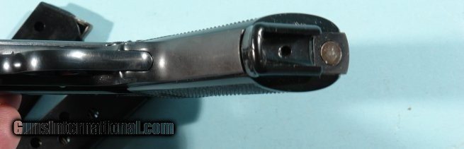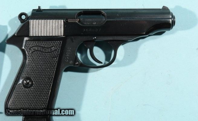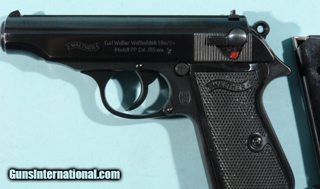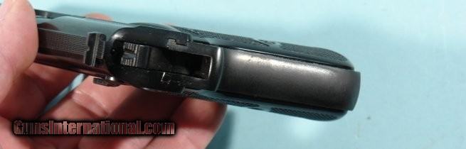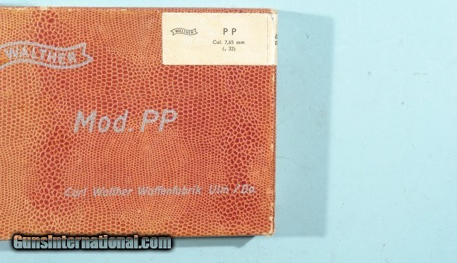 Description: GERMAN WALTHER MODEL PP 7.65MM (.32 ACP) BAVARIAN POLICE PISTOL CA. 1967 IN BOX W/ 2 EXTRA MAGAZINES. 3 ½” barrel. Excellent condition with all the blue finish. Has seen little use and is in perfect working order with excellent bore. Frame stamped “BYP” within an oval cartouche for Bavarian Police which is over stamped “XXX” indicating deaccessioned. With Walther box and two extra Walther marked factory magazines as well as the original Walther PP Instructions Manual. SOLD Curio/Relic: Yes |