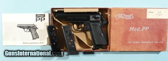 GERMAN WALTHER MODEL PP 7.65MM (.32 ACP) BAVARIAN POLICE PISTOL CA. 1967 IN BOX W/ 2 EXTRA MAGAZINES.