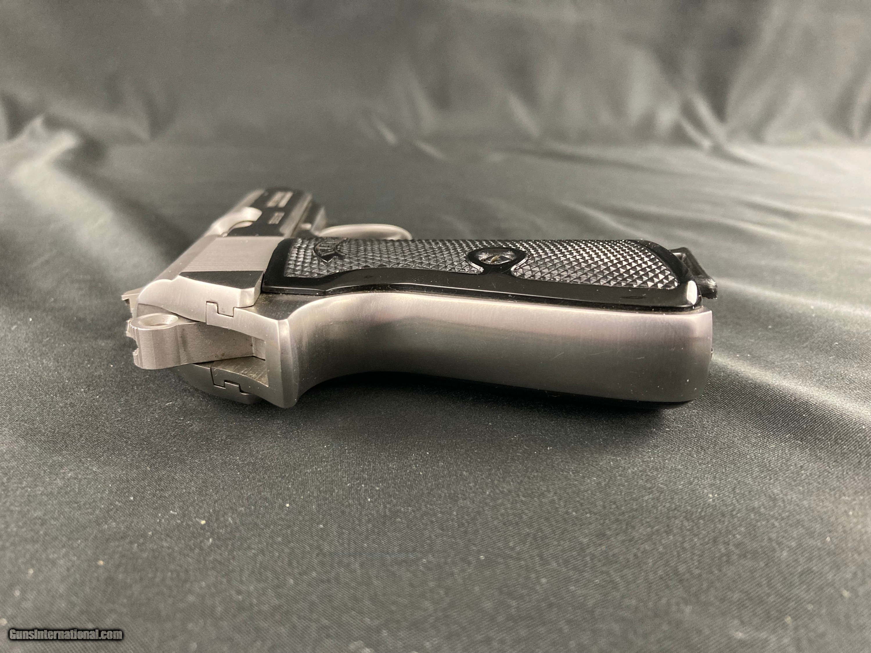 Description: Stainless steel, 3 ¼” barrel, made in USA by Interarms under license from Walther, with original box but no papers, one finger rest original magazine, no handling or carry wear, close to new condition ($35 shipping) SOLD Handgun Caliber: .380 ACP (9x17mm Browning Short) |