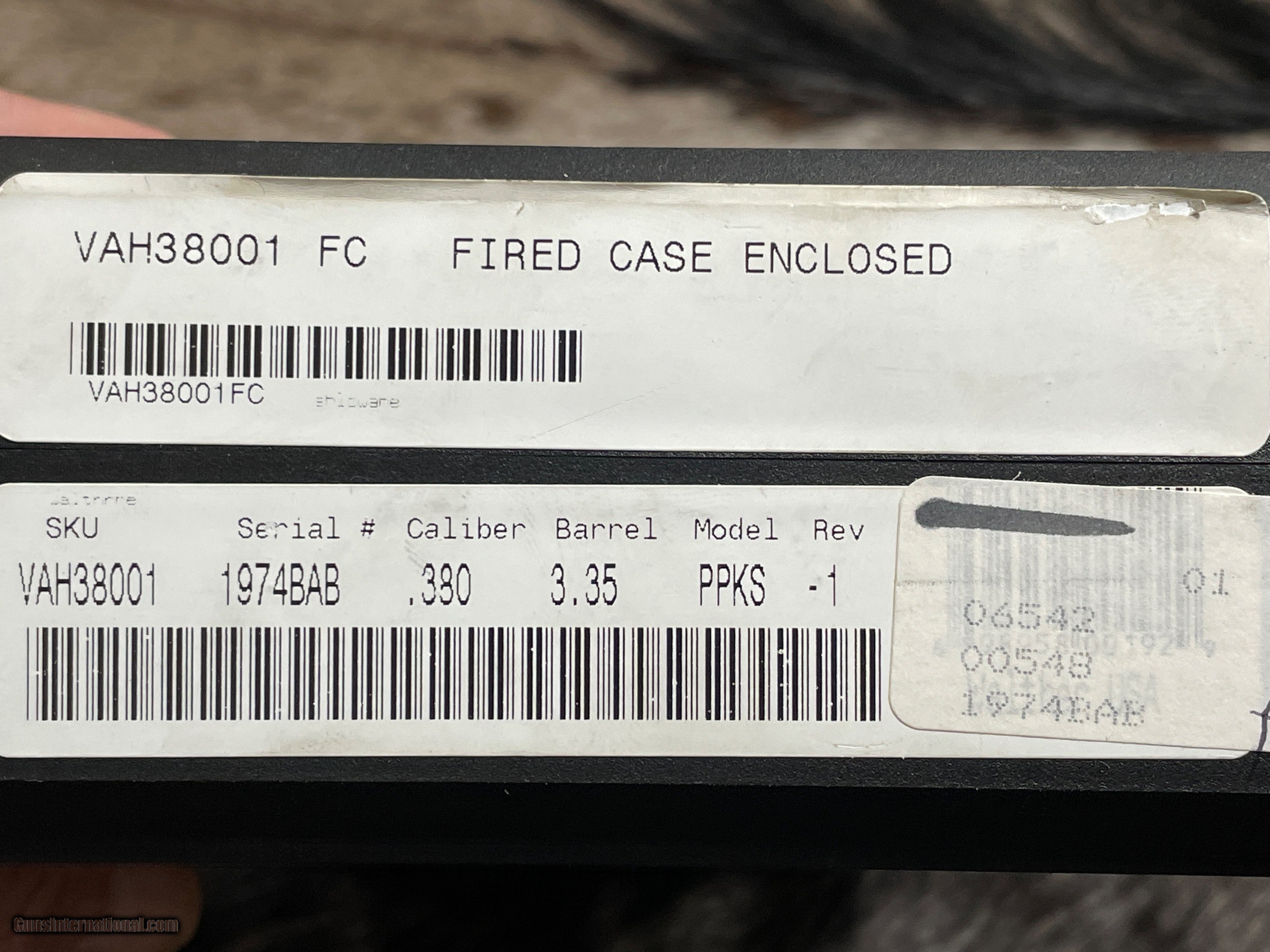 SOLD Handgun Caliber: .380 ACP (9x17mm Browning Short) Manufacturer: Walther Model: PPK/S Serial Number: 1974BAB Barrel Length: 3.3 Condition: Pre-owned, LNIB |