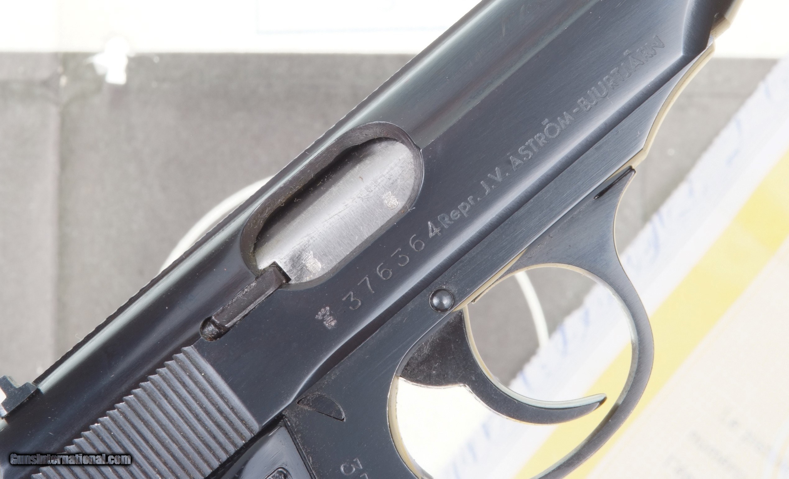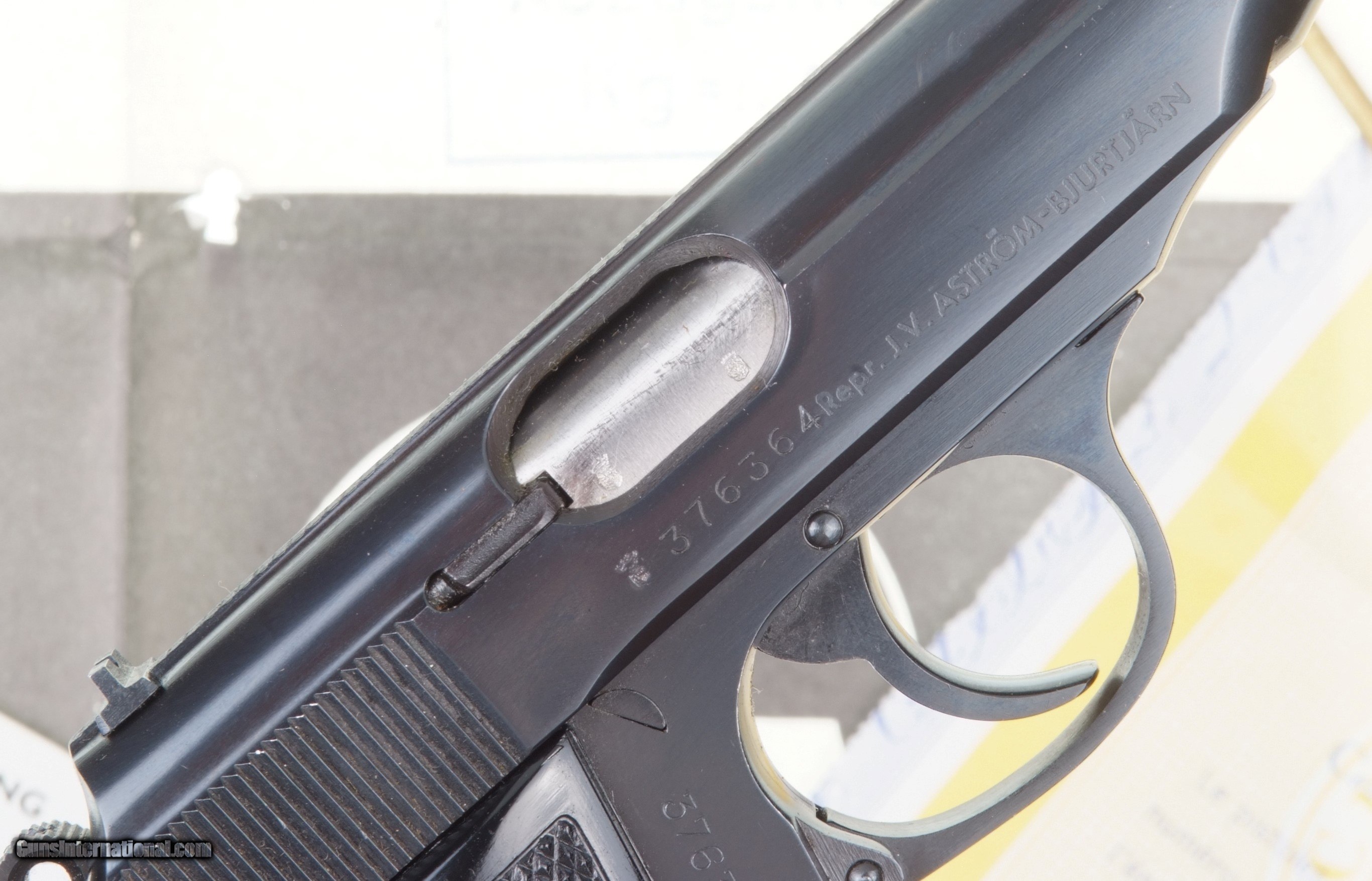 Extraordinary Manurhin Walther PP, SA/DA, Swedish contract with usual lanyard ring on butt. Virtually new with test target, matching proofing certificate, instruction manual and brass cleaning rod in factory matching box.