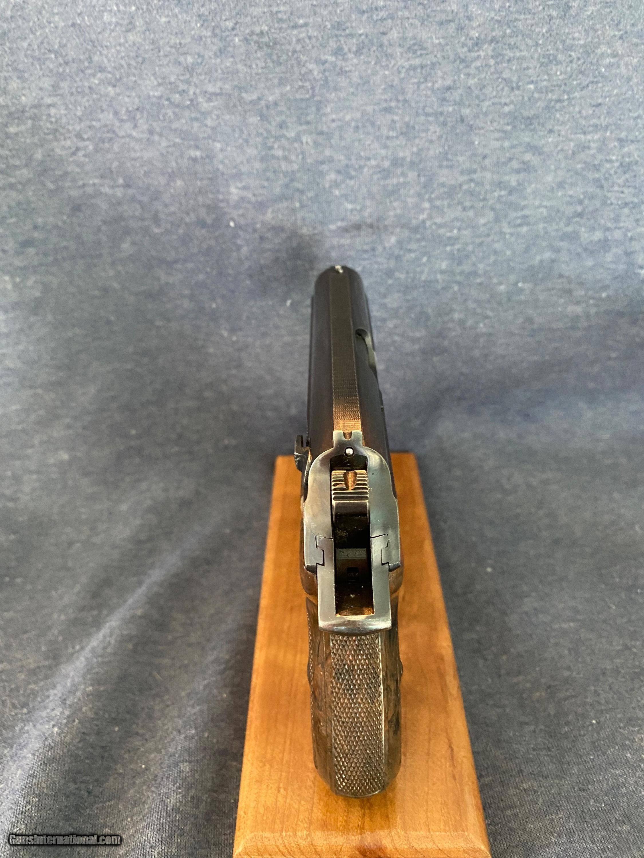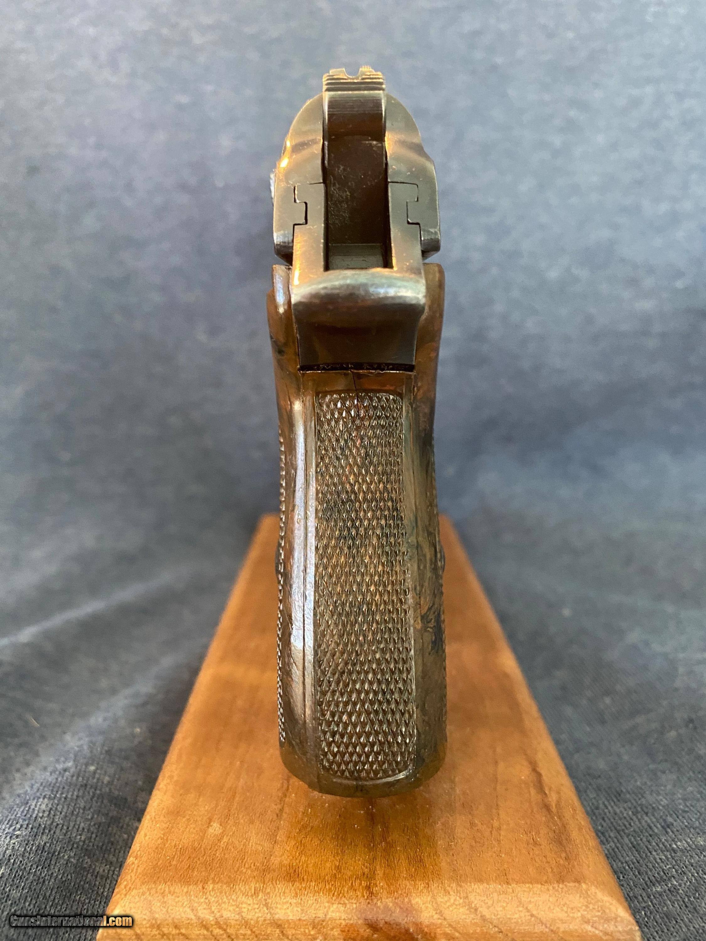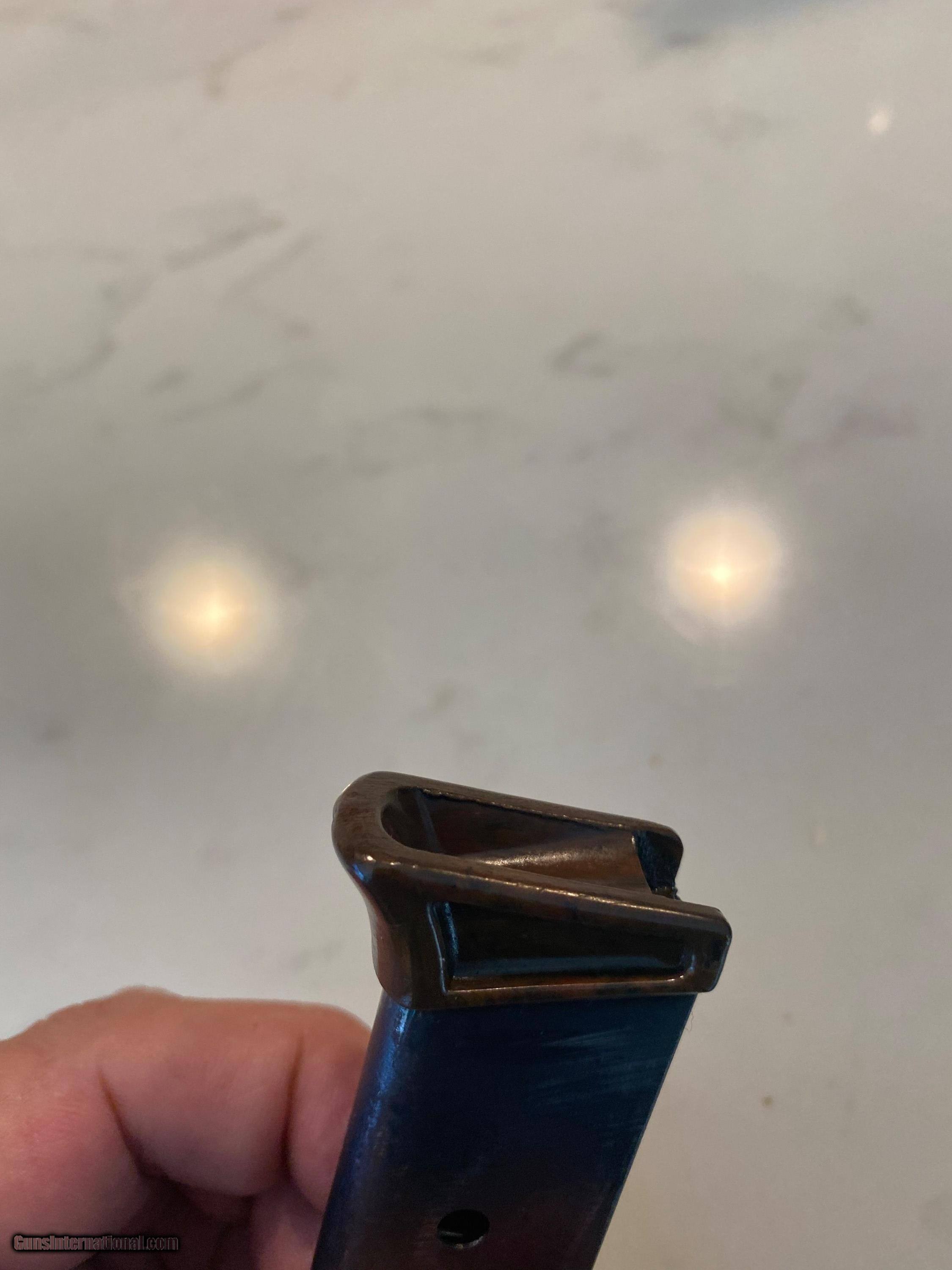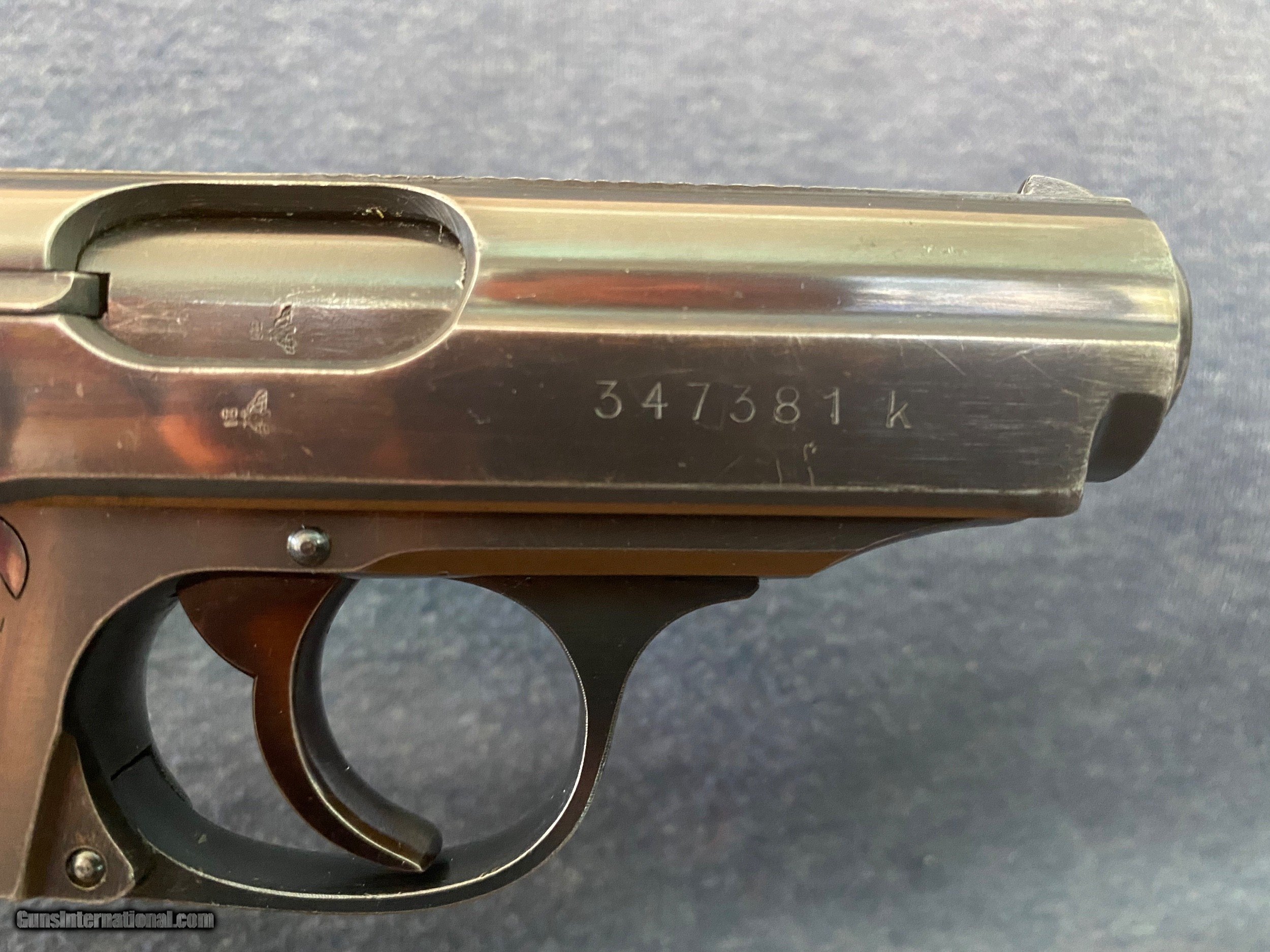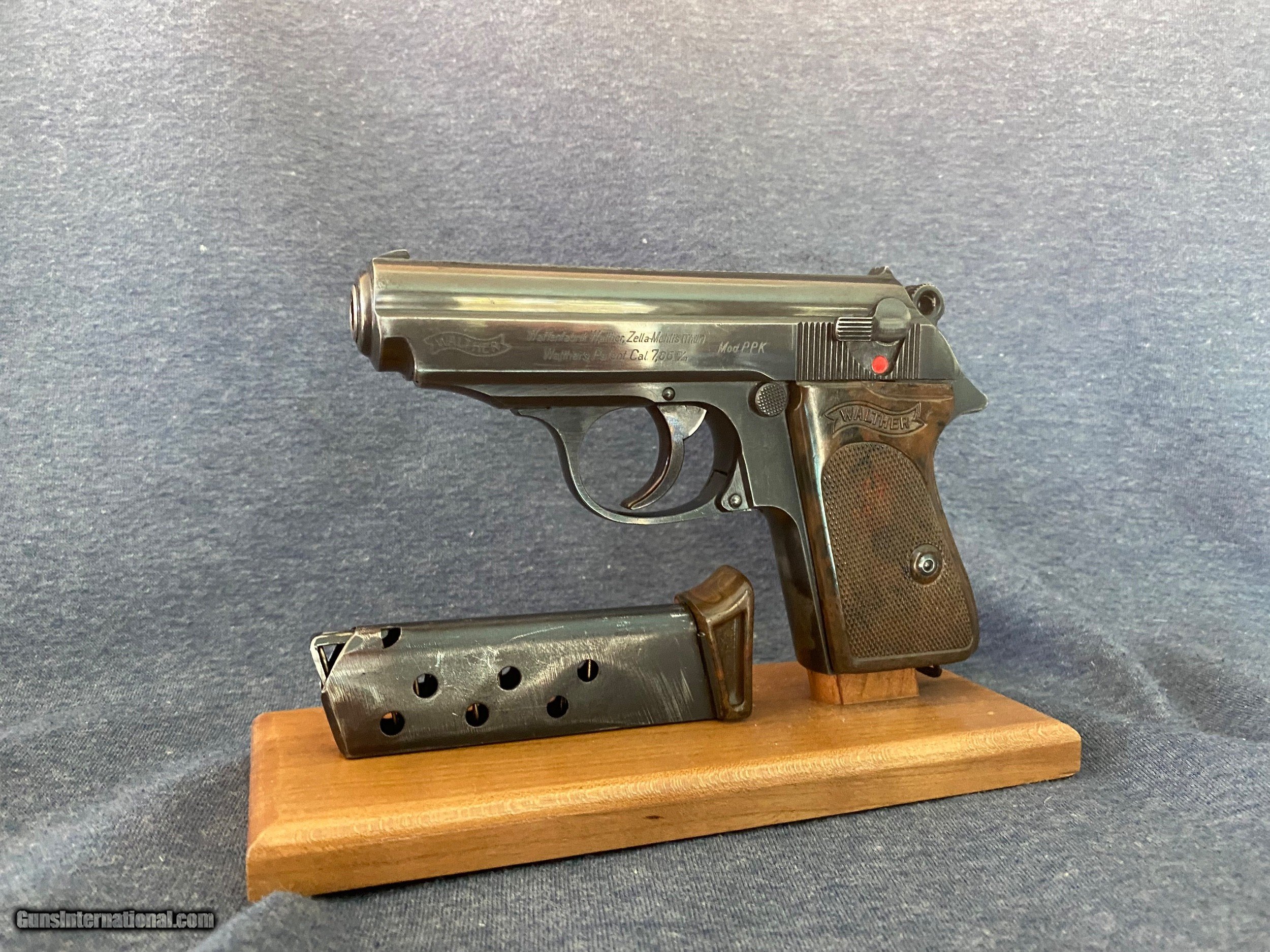 Description: Another! Price reduction! This is a beautiful wather PPK from 1941 with excellent grips with pinky extension magazine that matches perfectly this pistol is 100% correct look at the red in the grip and pinky extension absolutely stunning chocolate brown color hard to find this mint. This is a 99% condition fine example of a transitional color grip PPK with Nazi eagle N proof stamps.see photos. USPS money order only SOLD Curio/Relic: Yes |