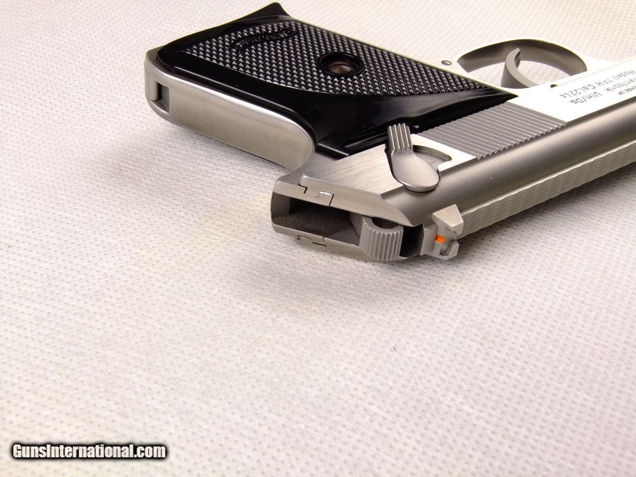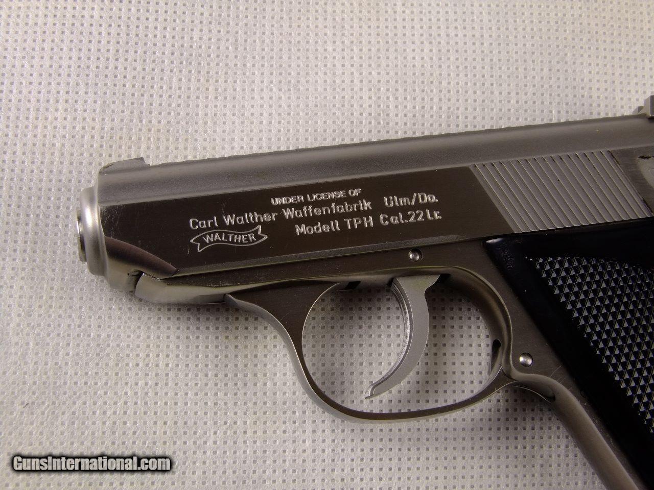 Description: SOLD-SOLD! Hard to find Mint Unfired Walter TPH .22LR Semi-Auto Pistol in 99+ Conditon. Has just a few micro handling marks on the front tip of the slide that are hard to perceive, if at all. With the slide removed, there is fine marks from having been cycled in the chamber area. Sorry, no box/papers. This is a mint example of the Walther TPH and would make a fine addition to any collection. Sorry, no box/papers. SOLD Manufacturer: Walther Model: TPH Serial Number: T027690 Caliber Info: .22LR Bore: Mint Condition: Mint Unfired! Action: Semi-Auto Finish: Stainless Steel Sights: Fixed Manufacture Date: 1990's Case: None Item Location: Rio Rancho, NM |
