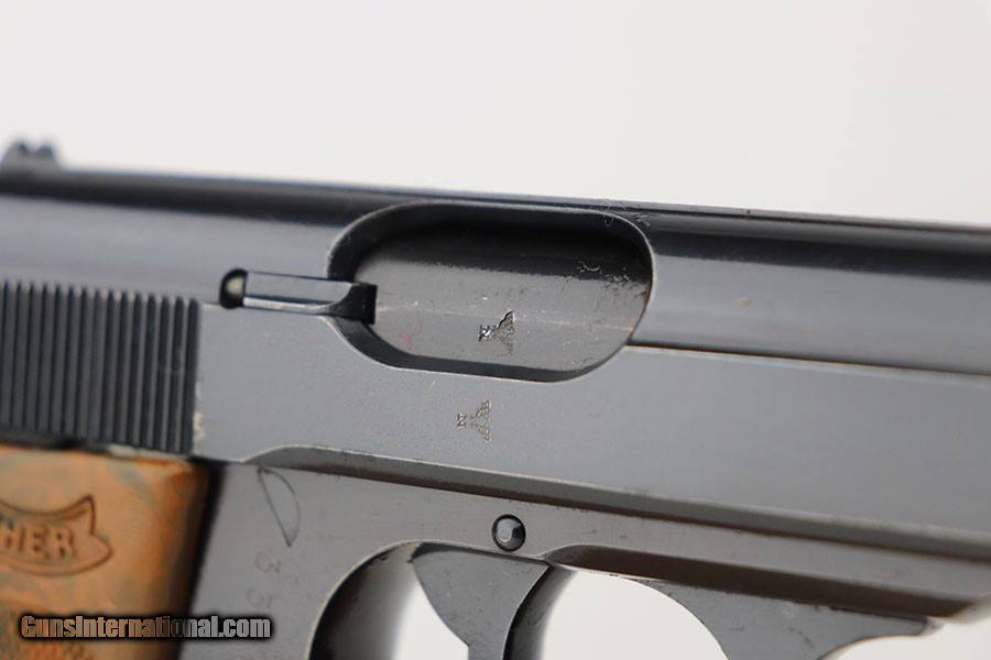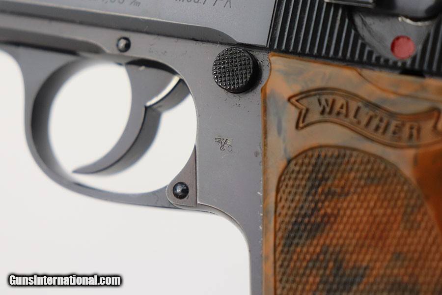 Description: This is a near-mint Walther PPK that was issued to German police in 1941. Eagle/C marked on frame. About 99% of the original, high-polish blue remains, with just a hint of muzzle wear. Mint bore. Excellent grip with no cracks or chips. SOLD Curio/Relic: Yes Handgun Caliber: .32 ACP (7.65x17mm Browning SR) Manufacturer: Walther Model: PPK Condition: 99% Bore Condition: 10/10 Manufacture Date: 1941 |